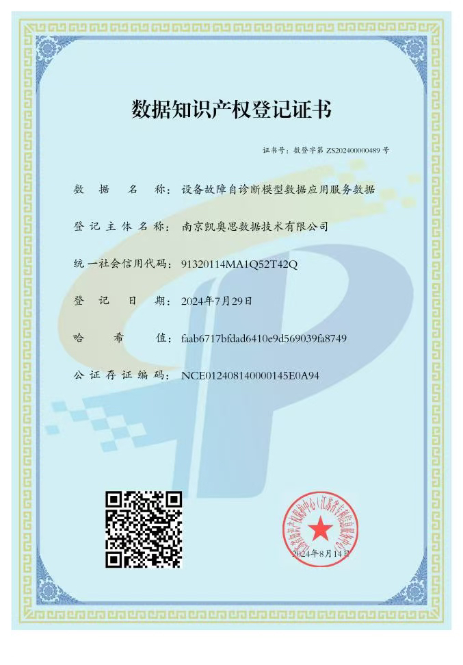 南京凯奥思是一家提供智能、安全、经济工业物联网产品和解决方案的科创企业,通过大数据建模分析,为工业企业提供设备在线监测、智慧运维、工业控制、供应链优化等服务。此次质押的“设备故障自诊断模型数据应用服务数据”数据知识产权是南京凯奥思在多年信息化投入下形成的一项核心数据集。该数据知识产权还入选了2025年江苏省数据知识产权登记运用典型案例。