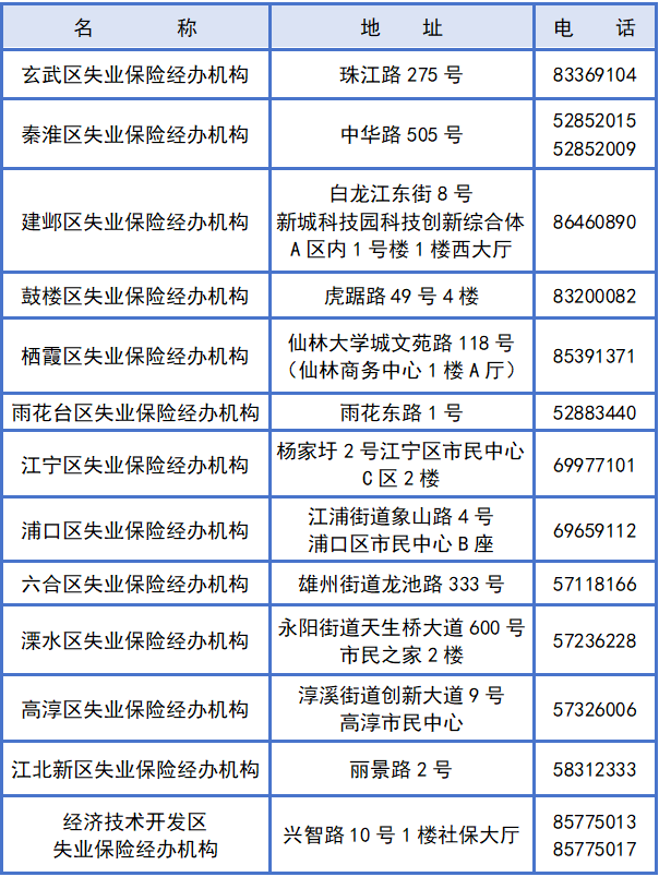 失业保险经办机构联系方式