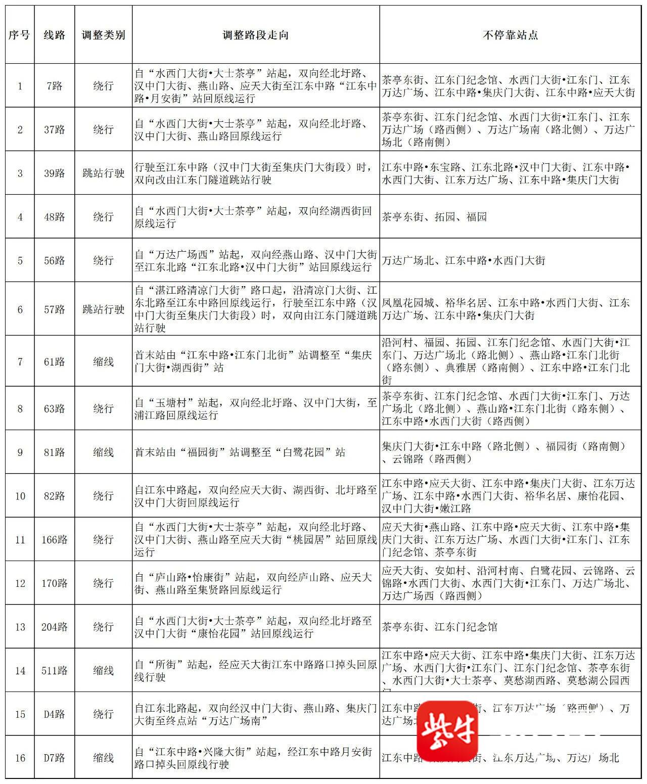 南京部分公交线路临时调整