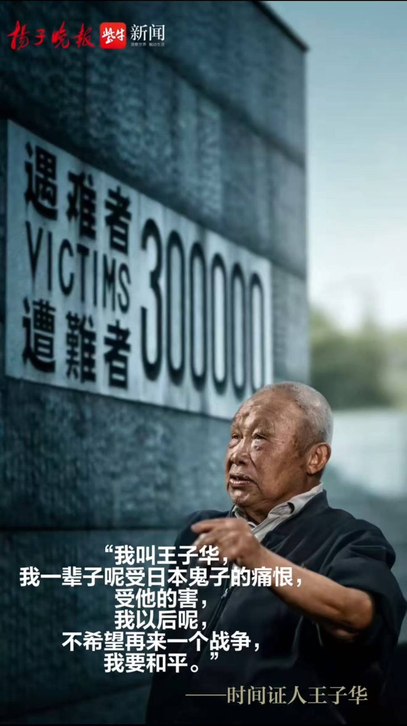 1937年,王子华五岁,一家人在雨花台附近的花神庙养花卖花,本来过着平静的日子,12月日军逼近南京,五岁的他跟着父母亲逃跑,只听到母亲说一句“赶快走,日本鬼子要来了”,话音刚落日本兵的子弹正好打中了他的膀子,幸好被母亲和哥哥拖进了房子里,由于当时医疗条件差,留下了后遗症,一到雨天伤残的膀子就会疼。王子华说:“我一辈子呢受日本鬼子痛恨,受他的害,我以后呢,不希望再来一个战争,我要和平。”