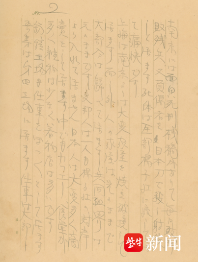 其中,一封由日本友人捐赠的信件,是侵华日军国崎支队步兵第四十一联队士兵村田芳夫于1938年1月8日写给父亲村田龟太郎的4页家信。经考证,村田芳夫所属的“国崎支队”原隶属于日军第五师团,占领南京后在江浦、浦口、江心洲等地实施了大屠杀。