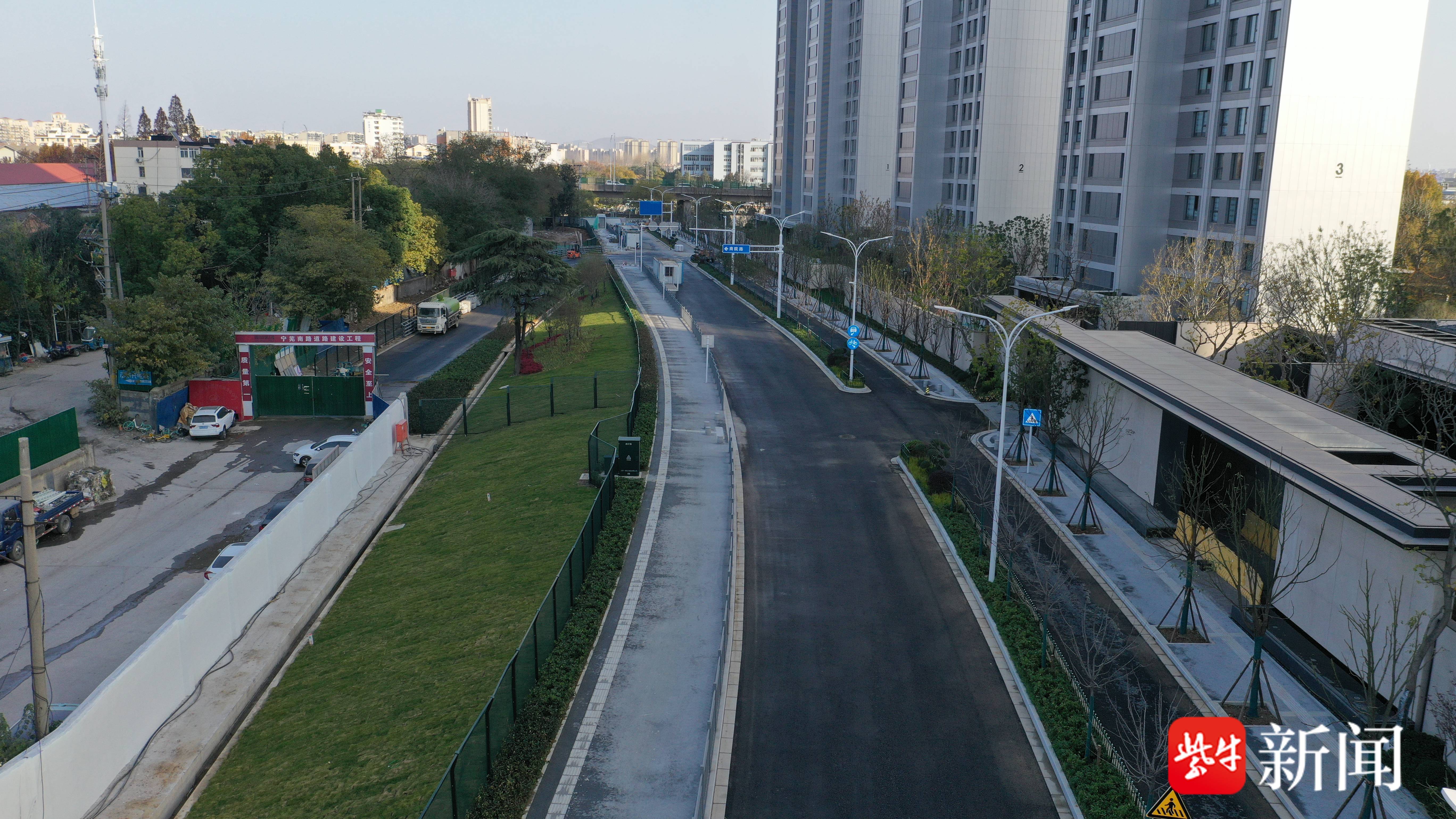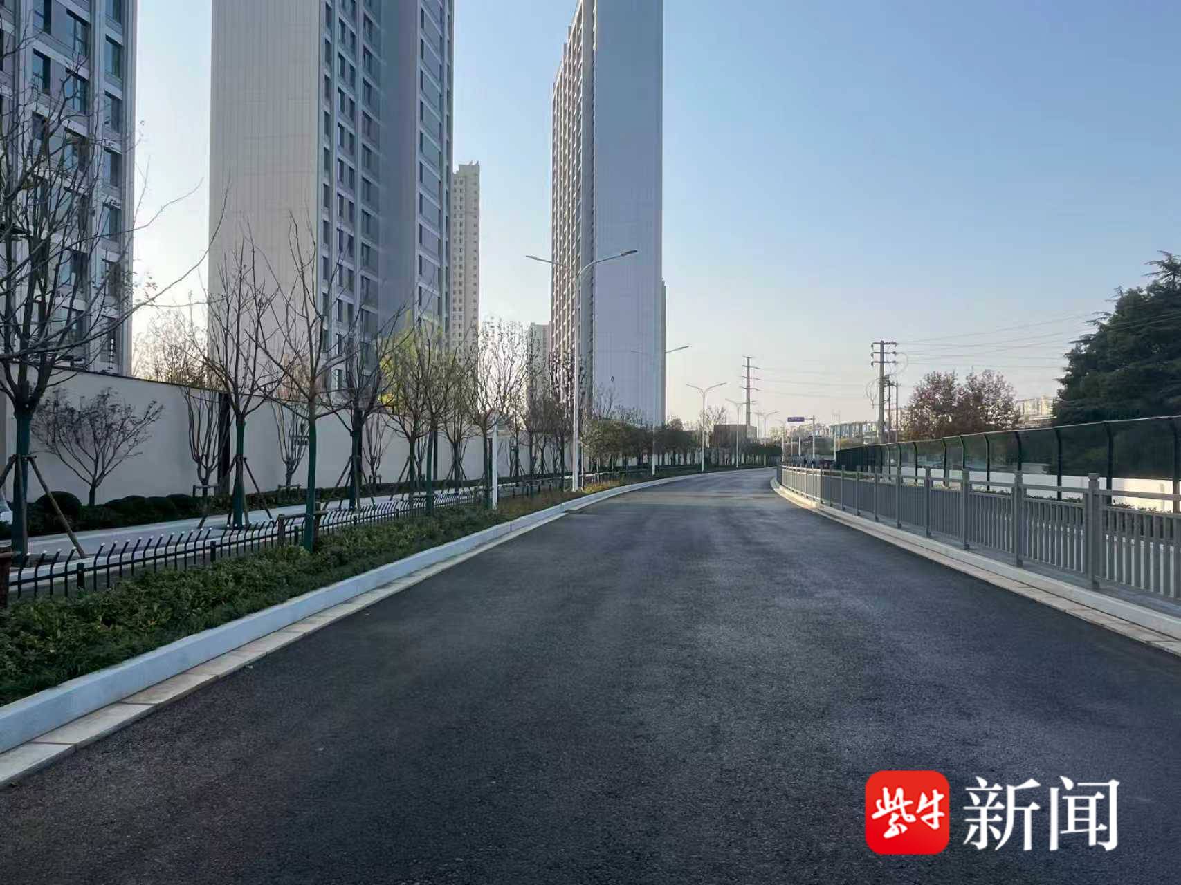 该道路命名为嶙泓路,西起观璟路,东至承天大道,北侧紧邻宁芜铁路,南侧为金基璟樾府,建设范围全长约450米,宽20米,属城市次干路。项目建设期间,重点对宁芜南路与商院路交叉渠化段实施改造升级,有效畅通了商院路—嶙泓路—观璟路连接形成的铁路南北向穿行通道,将原有“堵心路”提升为“舒心路”,在宁芜铁路尚未完成搬迁的情况下,切实为周边市民出行提供了便利。