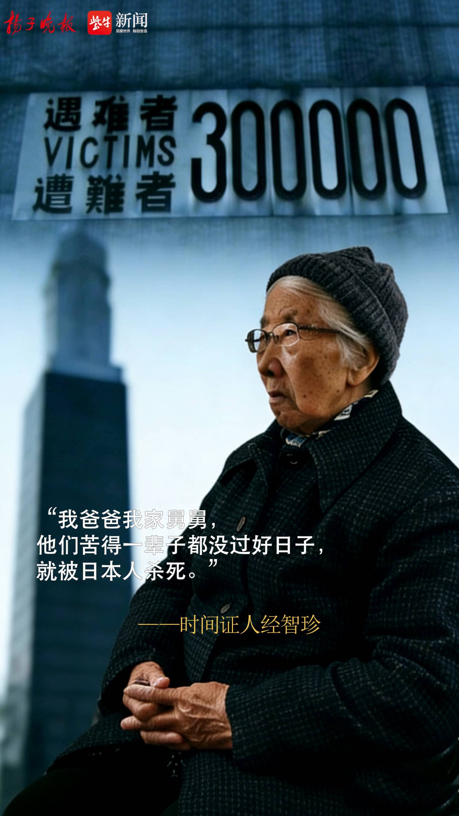 1937年日军破城之前,还不到10岁的经智珍和父母住在南京洪武路,父亲是个手艺人,给人做徽章为生。南京大屠杀拆散了这个家:舅舅和父亲先后被日军杀害,外祖母被逼疯了,经智珍在难民营才躲过一劫。因为大冬天睡在难民营冰冷的水泥地上,让年幼的经智珍罹患肾炎,很多年才治好。经智珍说:“我爸爸我家舅舅,他们苦得一辈子都没过好日子,就被日本人杀死。”