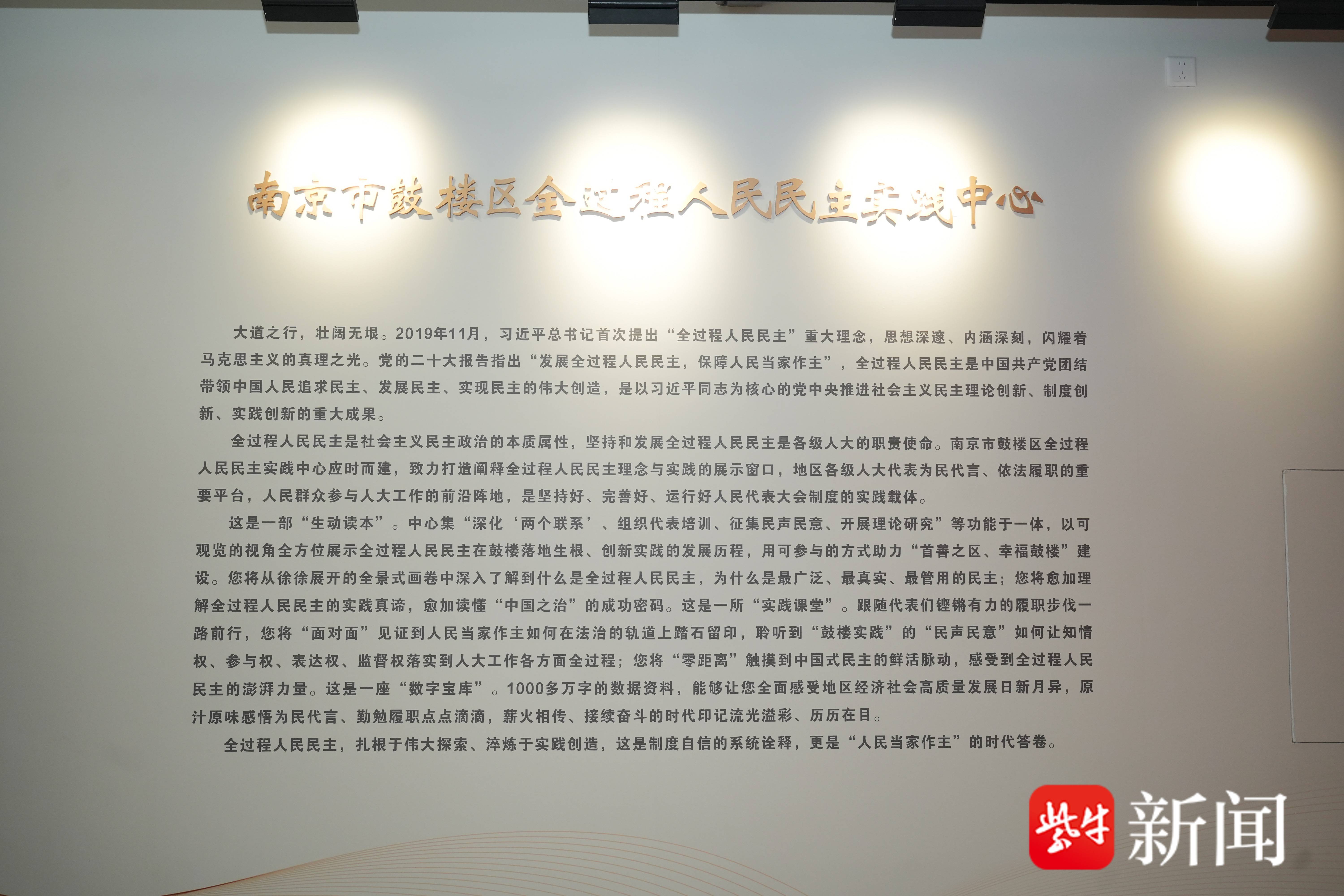 “全过程人民民主”是新时代我们党领导人民推进社会主义政治建设取得的重大理论和实践创新成果。鼓楼区人大常委会主任陆敏介绍说,在区委的关心支持下,鼓楼区人大在南京率先建设全过程人民民主实践中心,中心是集深化“两个联系”、组织代表培训、征集民声民意、开展理论研究等于一体的综合性平台载体,具有宣传阵地、教育基地、代表之家三大功能,以可观览的视角全方位展示全过程人民民主在鼓楼落地生根、创新实践的发展历程,用可参与的方式助力“首善之区、幸福鼓楼”建设。