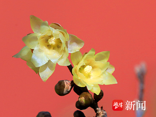 蜡梅的花期通常从12月延续至次年2月,南京地区12月下旬至1月上旬为盛花期。金黄色花朵与红墙黛瓦相映成趣,在料峭寒风中勾勒出冬日动人景致,吸引市民纷纷前来打卡赏景。