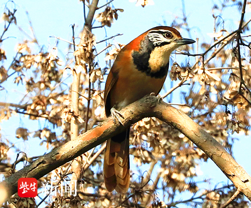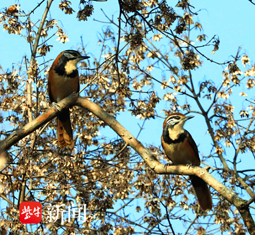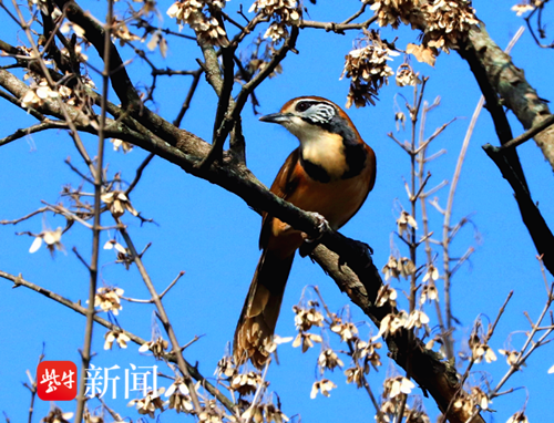 扬子晚报网12月16日讯(通讯员 徐福庚 记者 闫春旭)在南京明孝陵,偶然邂逅了美丽的黑领噪鹛。