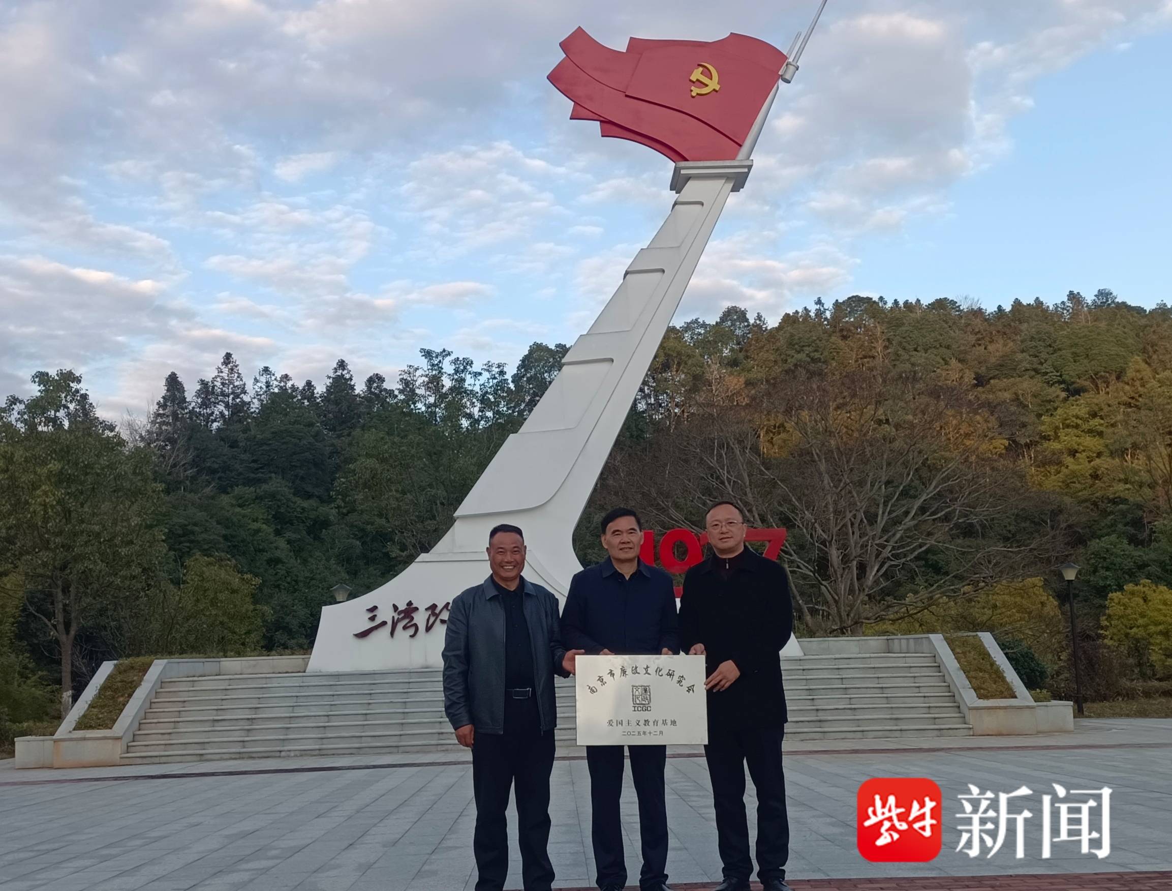 双方举行了简朴而庄重的“南京市廉政文化研究会爱国主义教育基地”授牌仪式。此举标志着三湾改编景区正式成为南京市廉政文化研究会开展爱国主义教育、革命传统教育和廉政文化教育的重要实践平台。