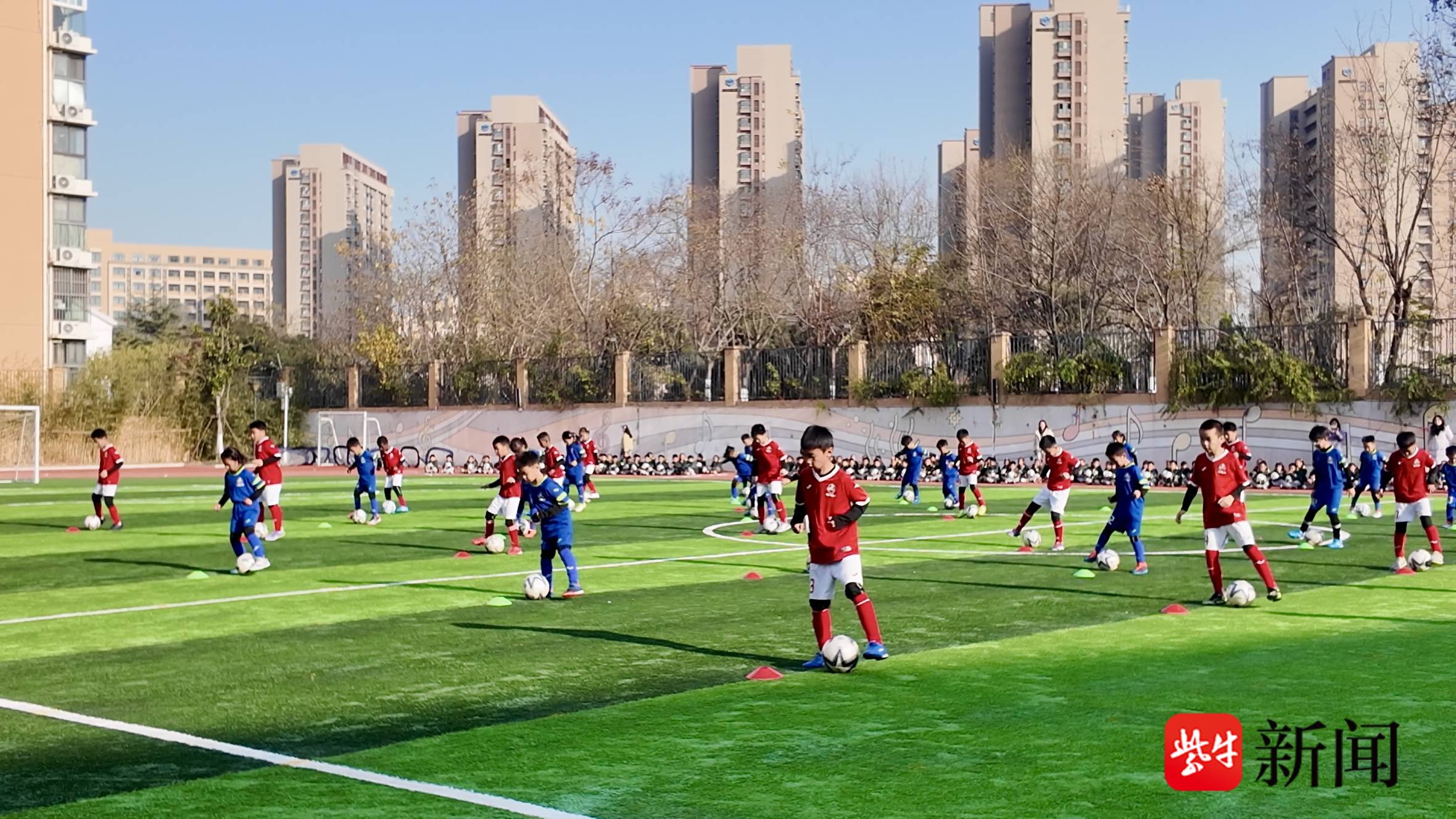 12月16日下午,扬子晚报/紫牛新闻记者原本与苏超南京队球员戈伟、姚远约好了采访,却意外跟着他们到了一所全新的足球特色学校——南京市长江路小学启迪分校并感受到了这里浓浓的校园足球氛围。玄武区体育教培活动也来到了该校,学生们在老师的带领下,在球场上展示着自己学习足球的成果,而玄武区各学校的体育老师代表也在现场认真观摩和记录。能够承办玄武区这次重要的体育教培活动,长小启迪分校足球正是凭借着他们的“拳头产品”——校园足球的普及与提高。