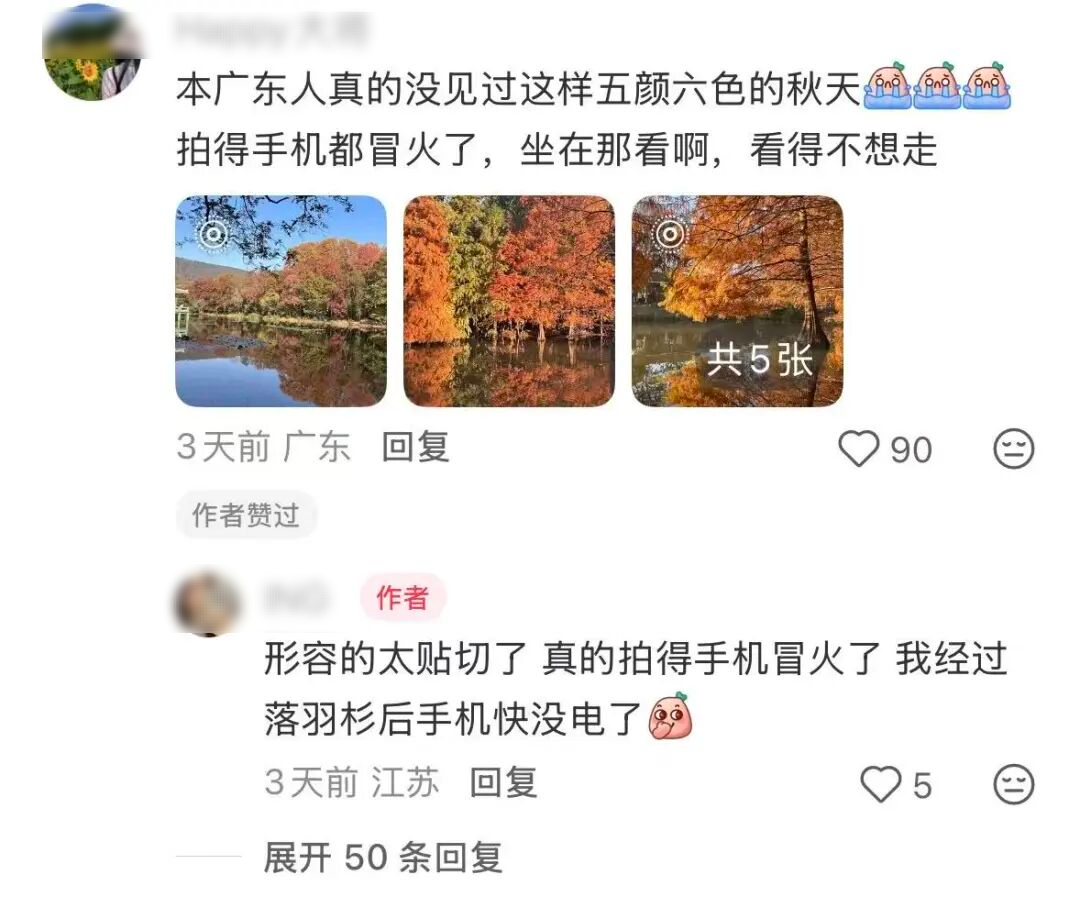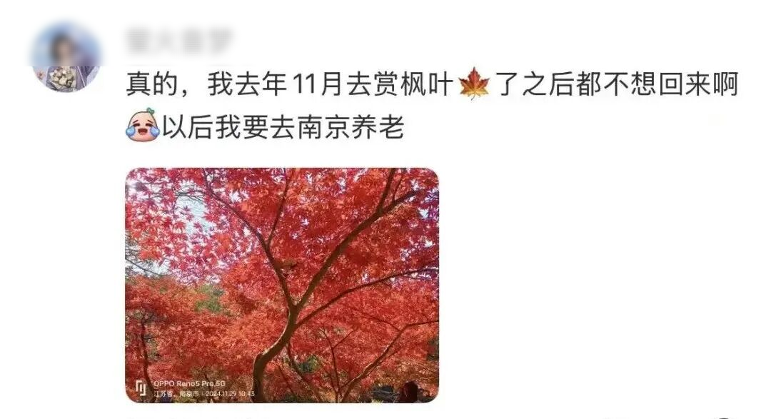 ○ 枫叶美到让广东网友直呼“以后我要去南京养老”。