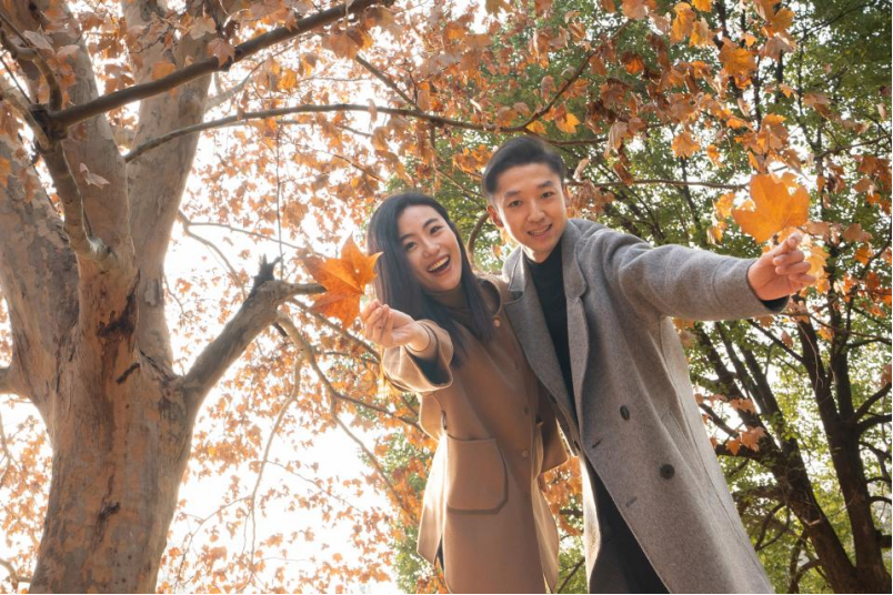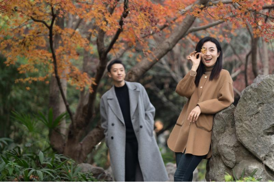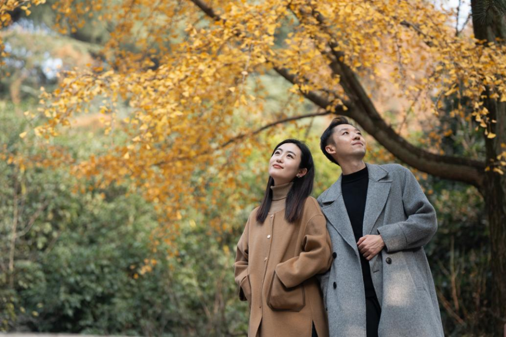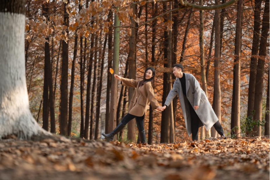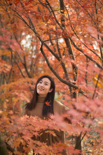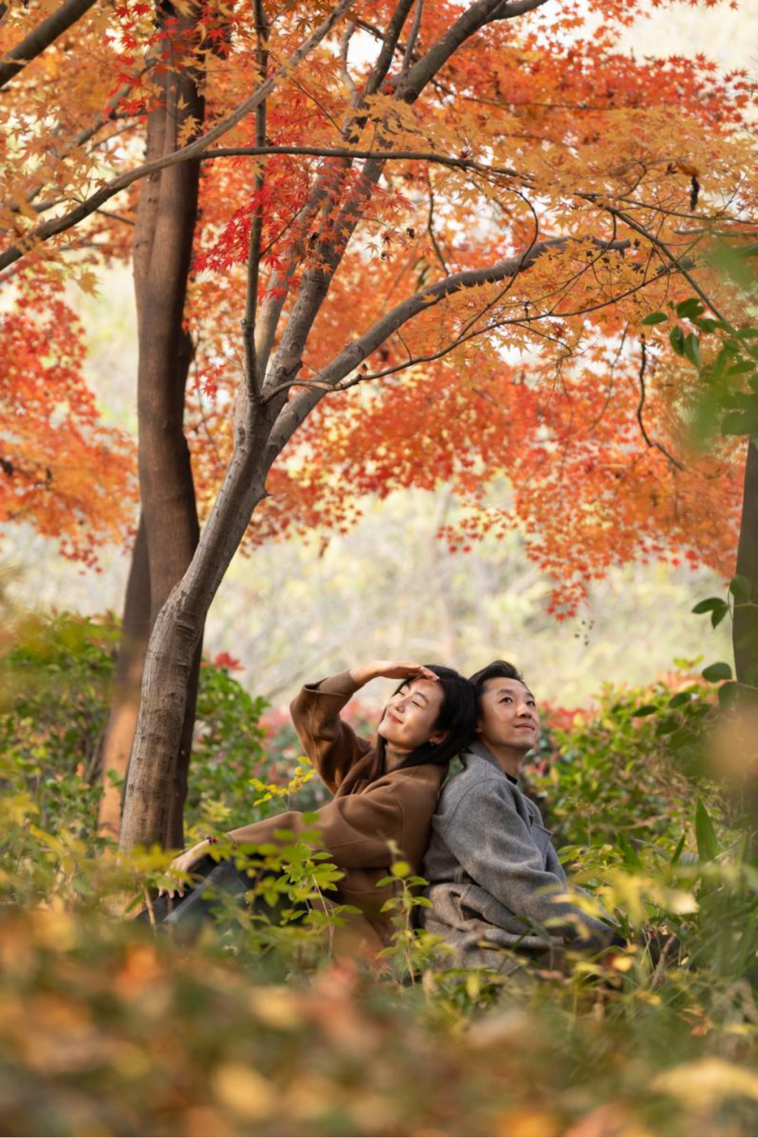 逆光拍摄时,叶片的脉络在光下透亮如蝉翼,人物漫步其中,衣角与落叶一同翻飞,轻松拍出电影感满满的冬日氛围感大片!