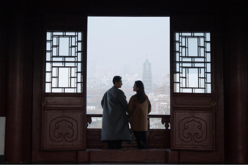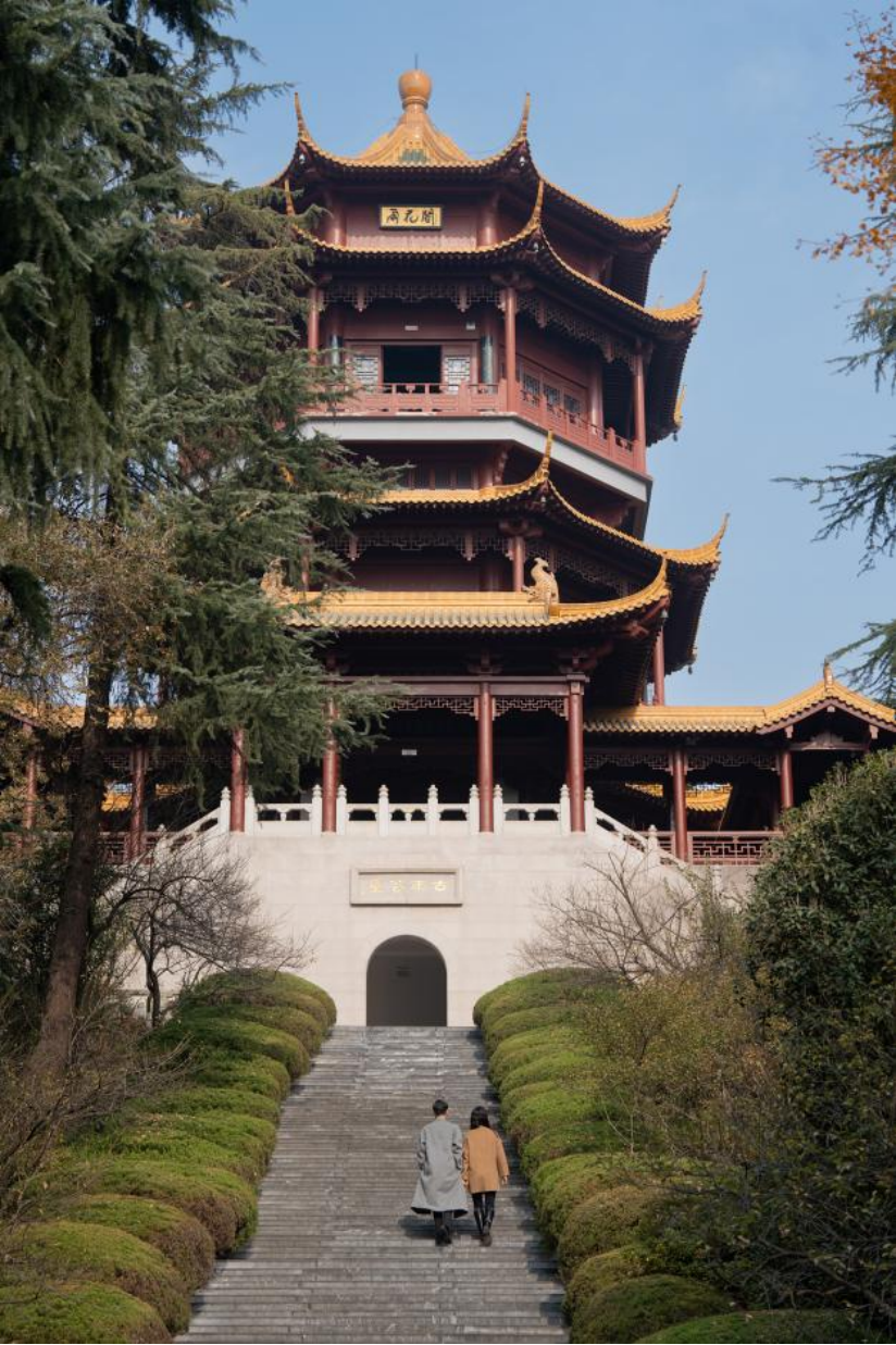 站在阁楼下仰拍,金色的飞檐和湛蓝天空碰撞出历史厚重感;登顶后转身,金陵城廓作为背景,侧影秒变古风故事感大片!