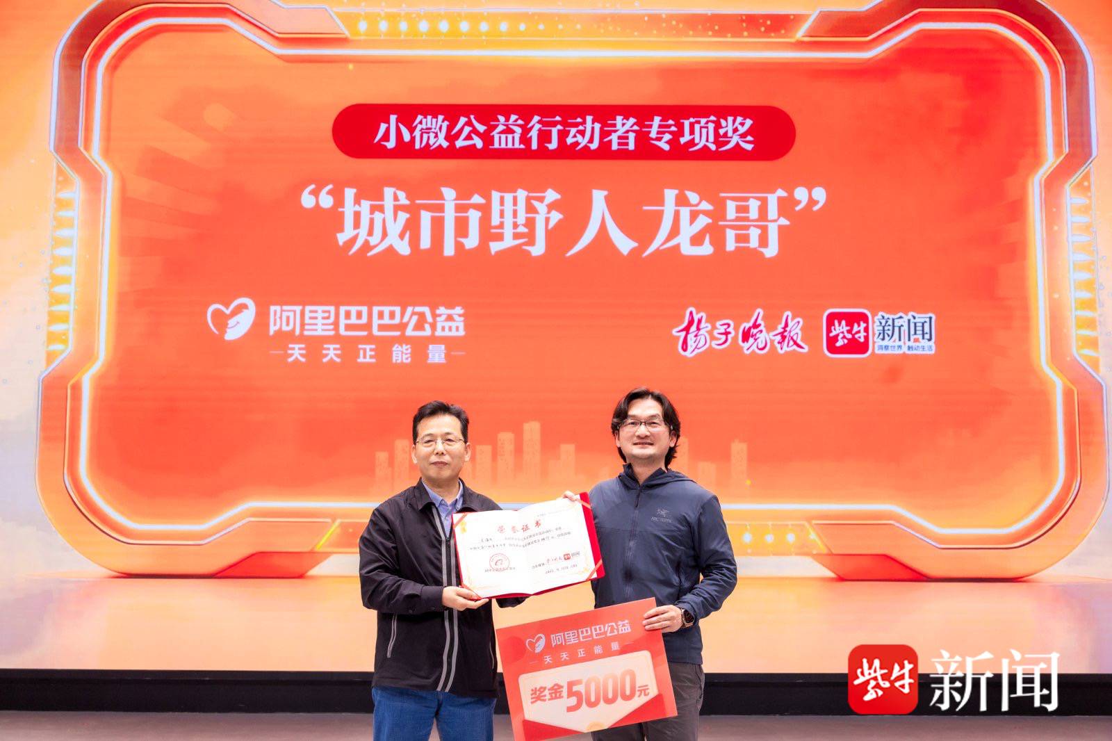 会上,阿里公益天天正能量顾问张银生为扬子晚报报道的正能量当事人“城市野人龙哥”颁发天天正能量奖金和证书。颁奖词写道:“城市野人龙哥”七年坚持,将“随手捡”化为“一起拾”,让个人对山野的热爱,成长为一份对公共环境的担当。你为山野立信,为人与自然立约——这条路也必将通往文明的深处。