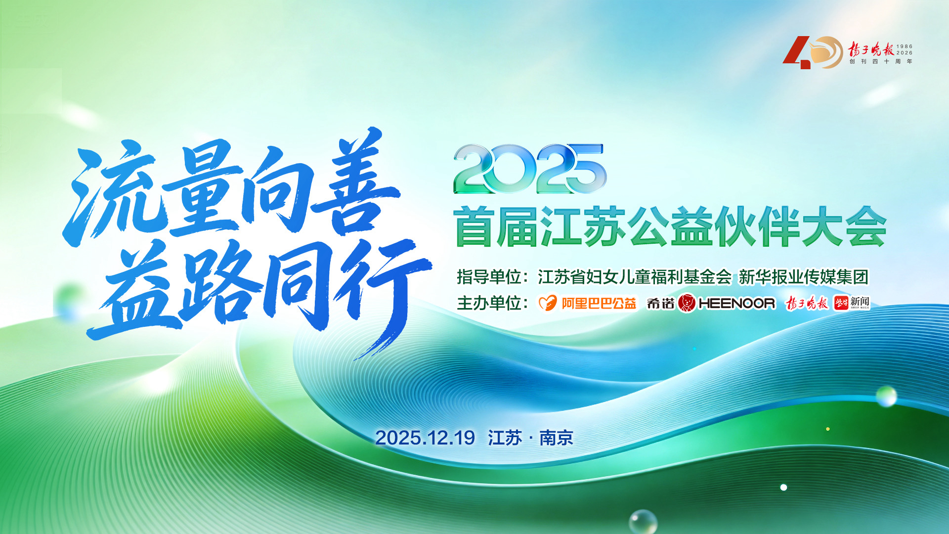 在扬子晚报创刊40周年之际,“流量向善 益路同行”2025首届江苏公益伙伴大会于12月19日下午在新华报业传媒集团智汇星空礼堂温暖启幕。本次活动由江苏省妇女儿童福利基金会、新华报业传媒集团指导,阿里巴巴公益、希诺股份有限公司、扬子晚报联合主办。