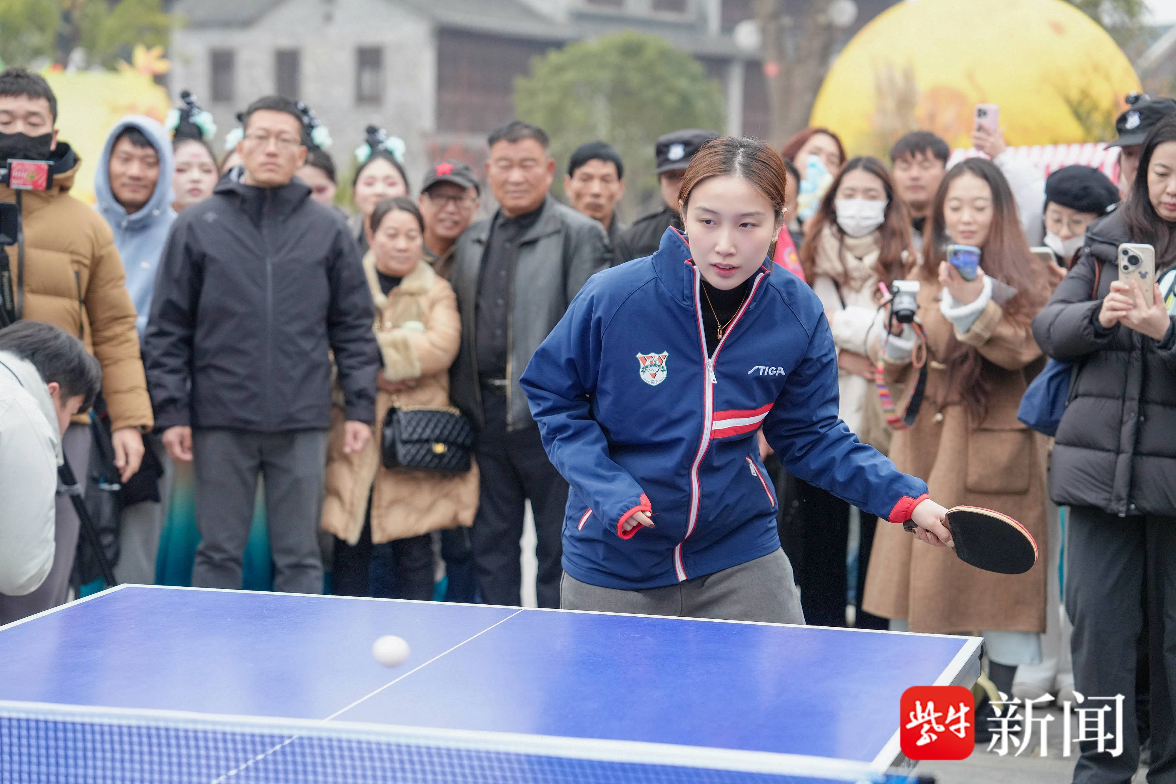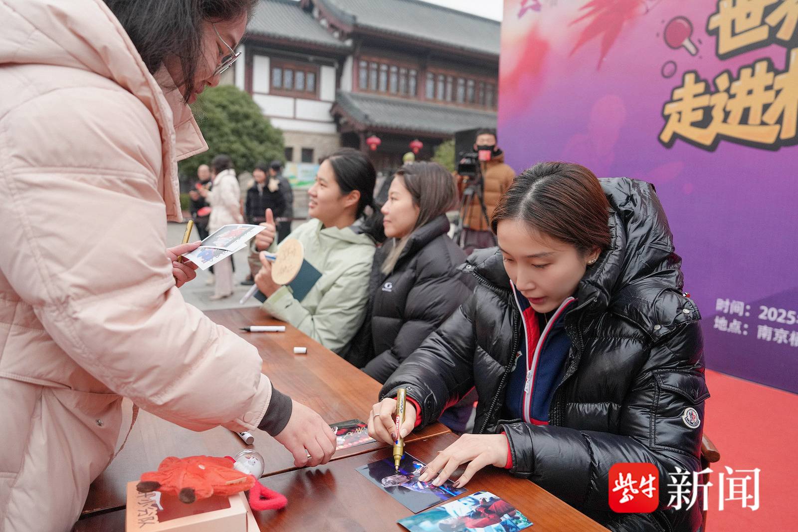 乒超冠军名将走进栖霞,与游客切磋球艺并签名留念