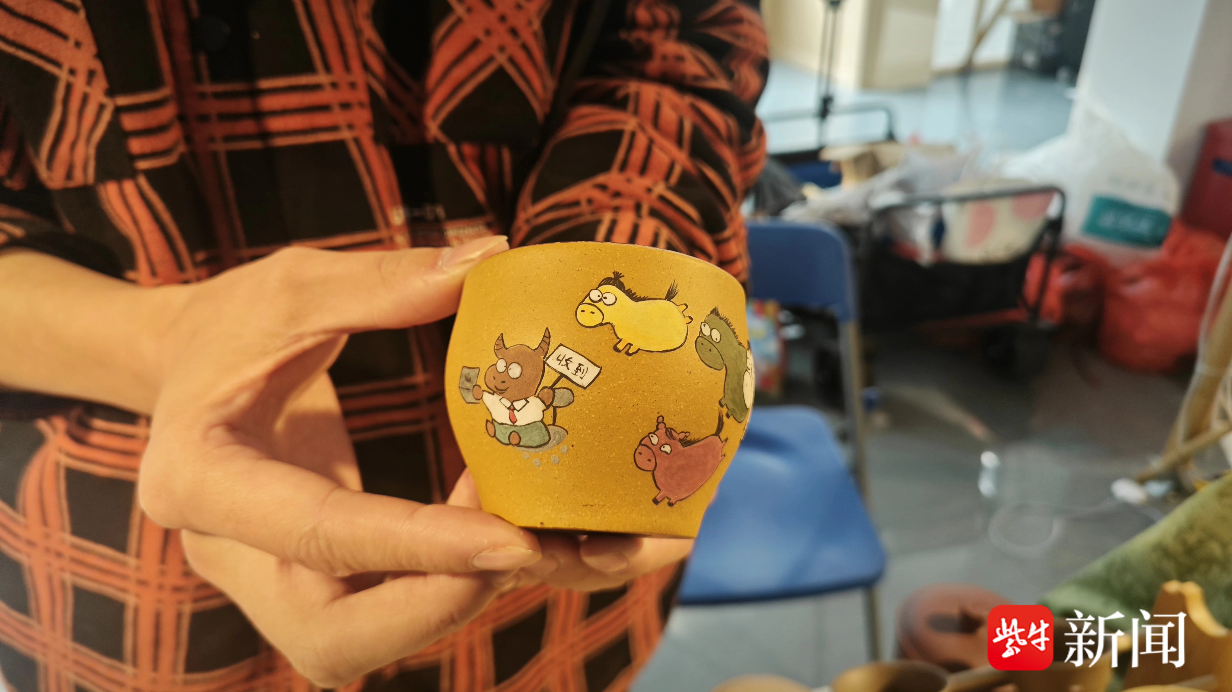 “颜色是通过天然矿物质调和,经高温烧制而成,稳定不易脱落。”来自宜兴的助理工艺美术师陈猛拿起一只造型可爱的紫砂摆件向记者介绍,紫砂摆件尤其受到年轻人青睐。29岁的陈猛毕业于苏州大学,接触紫砂已有十年。为此,他在设计中融入活泼元素:作品上绘有卡通图案,传统题材如“八骏图”也被赋予现代诠释,八匹马中不仅包括骏马,还创新加入了斑马、河马等形象,形成一幅生动有趣的“现代版八骏图”。“紫砂不只是茶具,也可以是陪伴日常的雅趣之物。透过这些充满巧思的作品,传统工艺正悄然走进年轻人的生活日常。”他说。