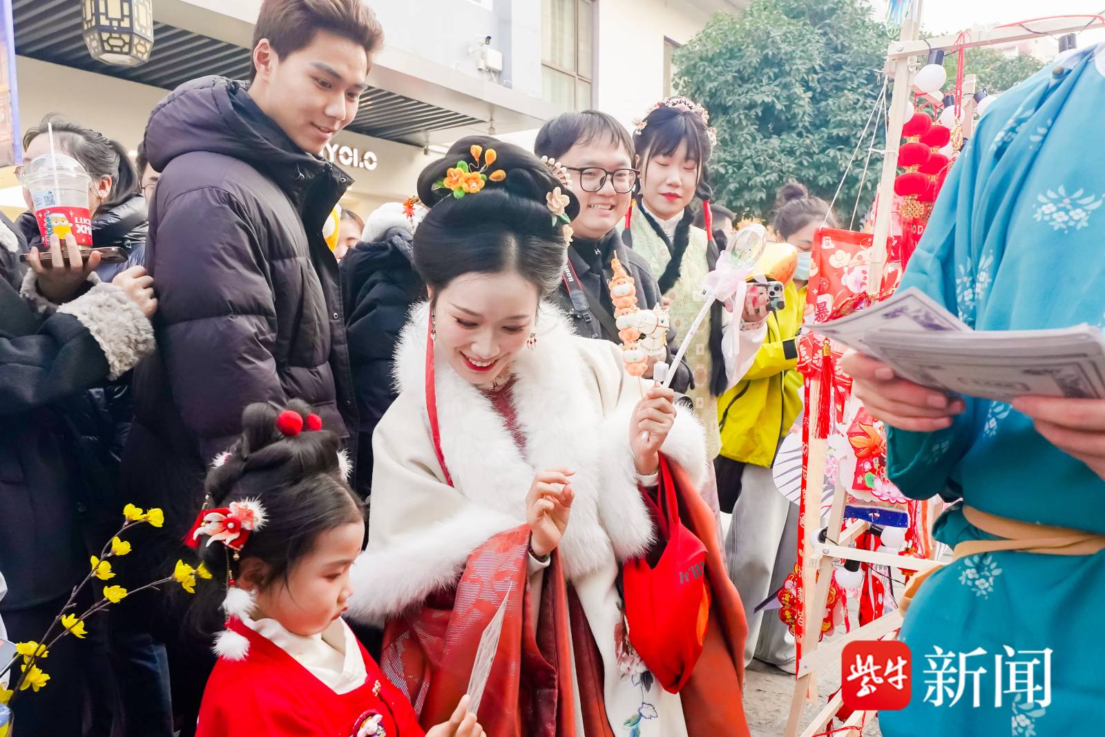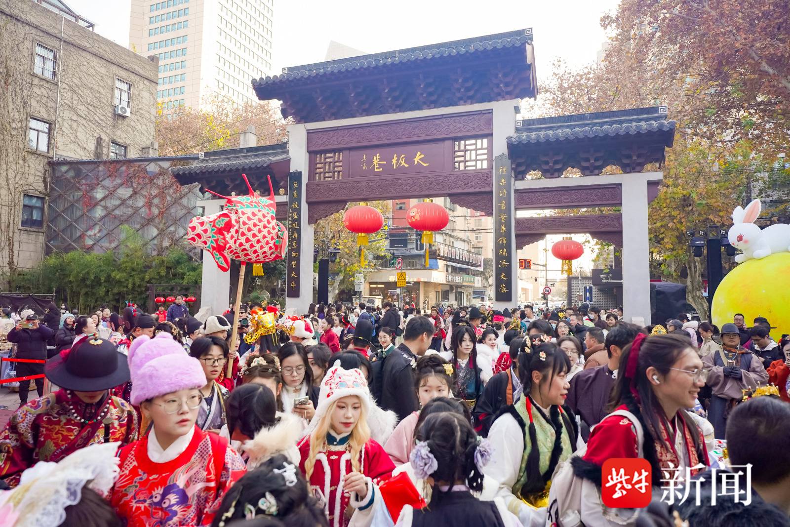 12月31日,街区准备了丰富多彩的节目。当晚,从下午到次日凌晨,汉服巡游、街唱擂台、南京评话、古彩戏法等环节接连上演,美食市集、年货大集、非遗体验同步开放。游客可以一边品尝美食,一边参与演出互动,在烟火气与仪式感中迎接新年。
