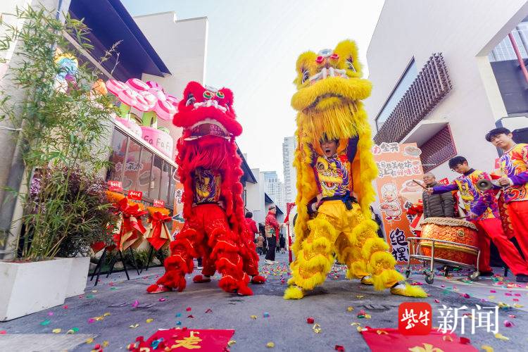 12月27日上午,伴随阵阵锣鼓声,“走马巷美食坊”在一场祥狮献瑞的民俗表演中开市迎客。地道的南京吆喝声在街巷深处响起,吸引了不少游客驻足欣赏。“南来的北往的客官请进店一尝——”身着传统服饰的女掌柜和店小二也在吆喝声中出门迎客,介绍今日出摊美食。