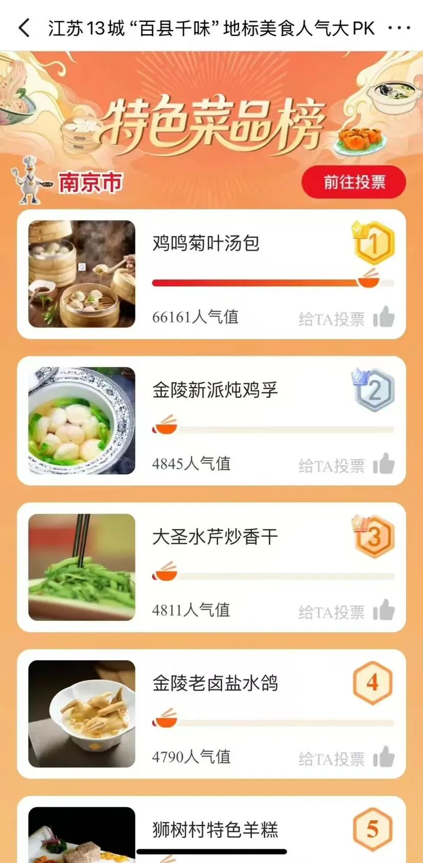 下载荔枝新闻客户端,扫描二维码进入活动页面,从地图点击进入南京市,每天每个ID可点赞10次,可全投给一道菜,也可分给多道菜。(活动截止时间为2026年1月29日)