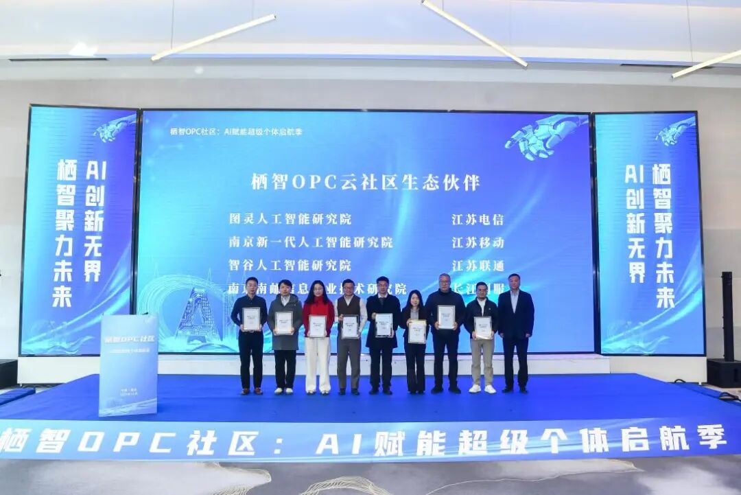 为推动生态共建,栖霞区政府向图灵人工智能研究院等8家核心机构授予“栖智OPC云社区生态伙伴”称号,共同构筑技术、资本与服务网络。