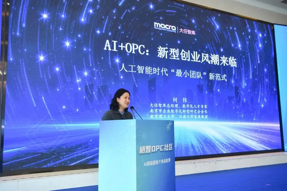 南京市企业数字化转型研究会会长何伟解读“AI+OPC:新型创业风潮来临”,栖霞区正以政策为翼、人才为基、技术为核、场景为壤,全力拥抱“AI+”时代浪潮,为在场创业者与嘉宾赋能。