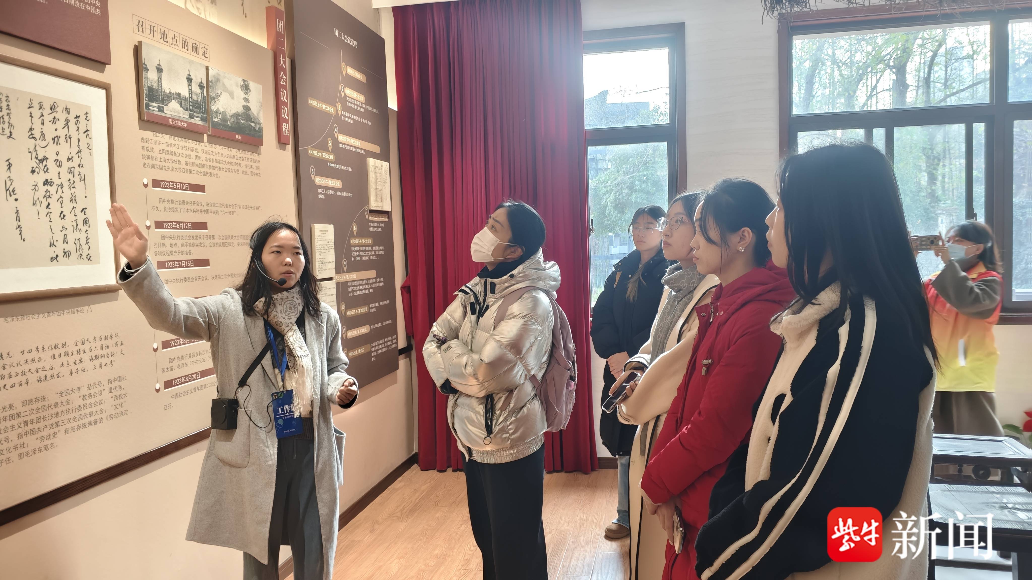 随后,青年们步行至东南大学,步入这所中国最早建立的高等学府之一。从东门进入,健雄院、大礼堂涌泉、吴健雄纪念馆、南高院、体育馆等建筑逐一展现在眼前。第二站梅庵,不仅是教育家李瑞清的纪念地,更是南京市社会主义青年团的诞生地、中国社会主义青年团第二次全国代表大会会址。馆内陈列的团二大会议文件,通过实物展陈与场景复原,多维再现激情燃烧的岁月。