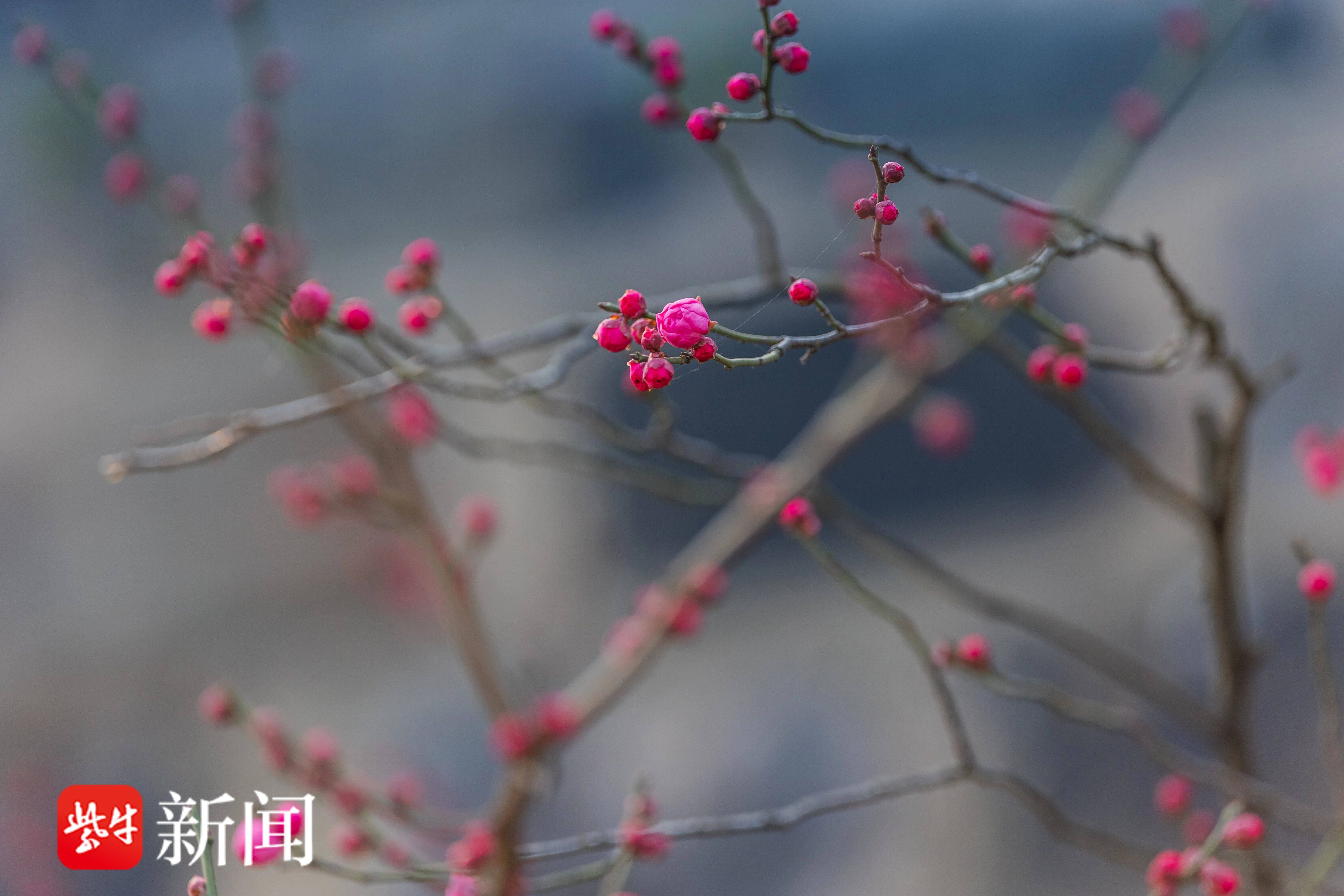 与此同时,玄武湖的蜡梅也渐入佳境,预计在1月中旬进入最佳观赏期。在景区梁洲金陵盆景园、龙引堤等区域,已有蜡梅凌寒而开,幽淡的香气沁人心脾。更令人惊喜的是,小部分性急的梅花也按捺不住,在情侣园、梁洲沿湖堤岸等地,探出了零星的粉红蓓蕾,为尚未褪尽绿意的冬日湖景平添了一抹灵动生机。