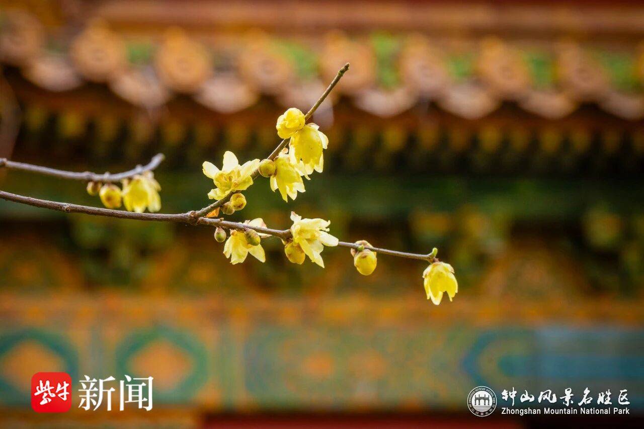眼下,明孝陵景区已有蜡梅早绽,朱红色宫墙映着星星点点的黄色花朵,酿成中式美学独有的浪漫。这里是南京蜡梅的品种宝库,拥有蜡梅品种约60余种,如:素心品种“钟山白”“卷被素心”,晕心品种“玉碗藏红”“浅晕金蝶”,红心品种“早红”“金陵红妆”等。其中,“钟山白”“金陵红妆”“霞染淡玉”和“浅晕金蝶”为景区蜡梅国际登录品种,均分布于明孝陵蜡梅园。从金水桥到文武方门,再到享殿,内红门、方城明楼的两侧遍植蜡梅,正酝酿一场盛放,静候游人品鉴。