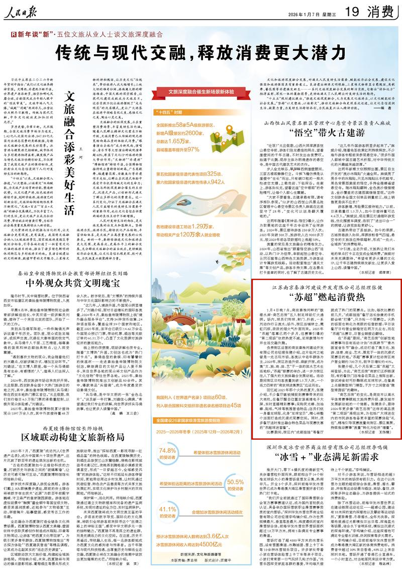 刊发文章《传统与现代交融,释放消费更大潜力(新年谈“新”·五位文旅从业人士谈文旅深度融合)》
