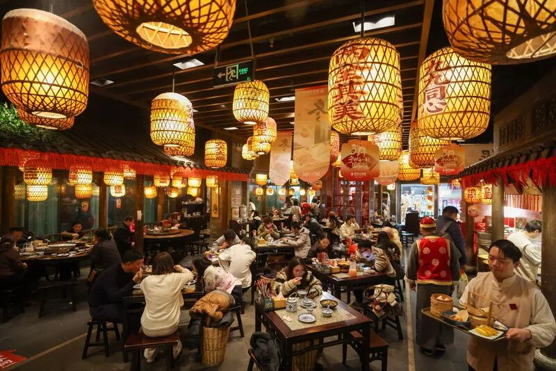 2026年1月3日,在江苏南京,市民游客在南京大牌档鼓楼紫峰店就餐,盐水鸭、美龄粥、赤豆元宵等经典美食备受青睐。徐 琦摄(人民视觉)