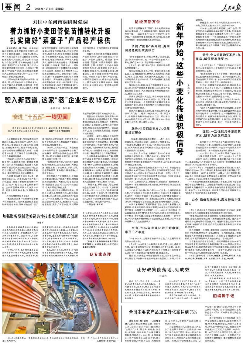 刊发文章《新年伊始,这些小变化传递积极信号(经济新方位)》