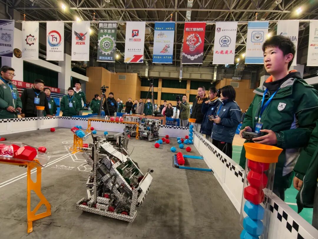 南京(大厂)民办育英第二外国语学校负责人进一步介绍称,赛前,选手们分工明确、紧密合作,顺利完成了展板制作、队旗设计、工程笔记撰写、队伍宣传视频拍摄与制作、机器人设计与制作、答辩PPT制作、对抗训练以及程序调试等多项任务。