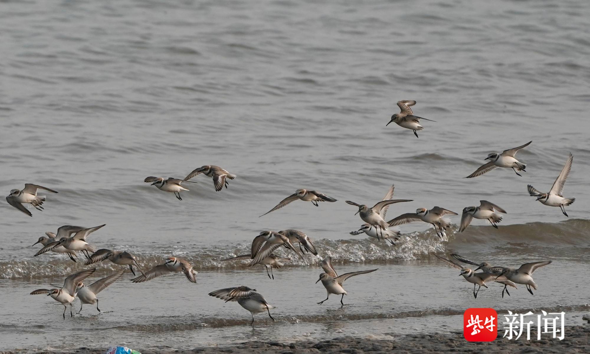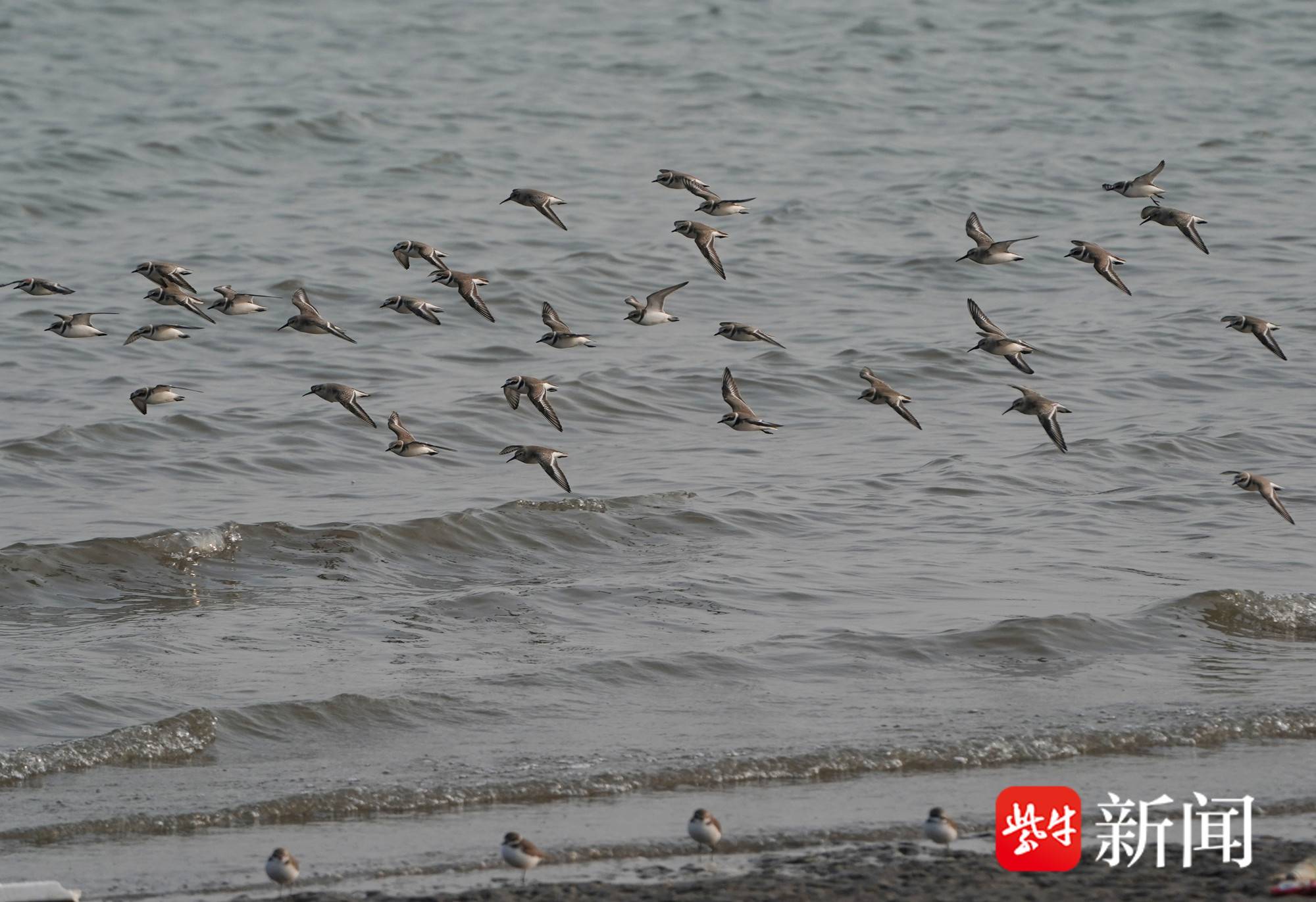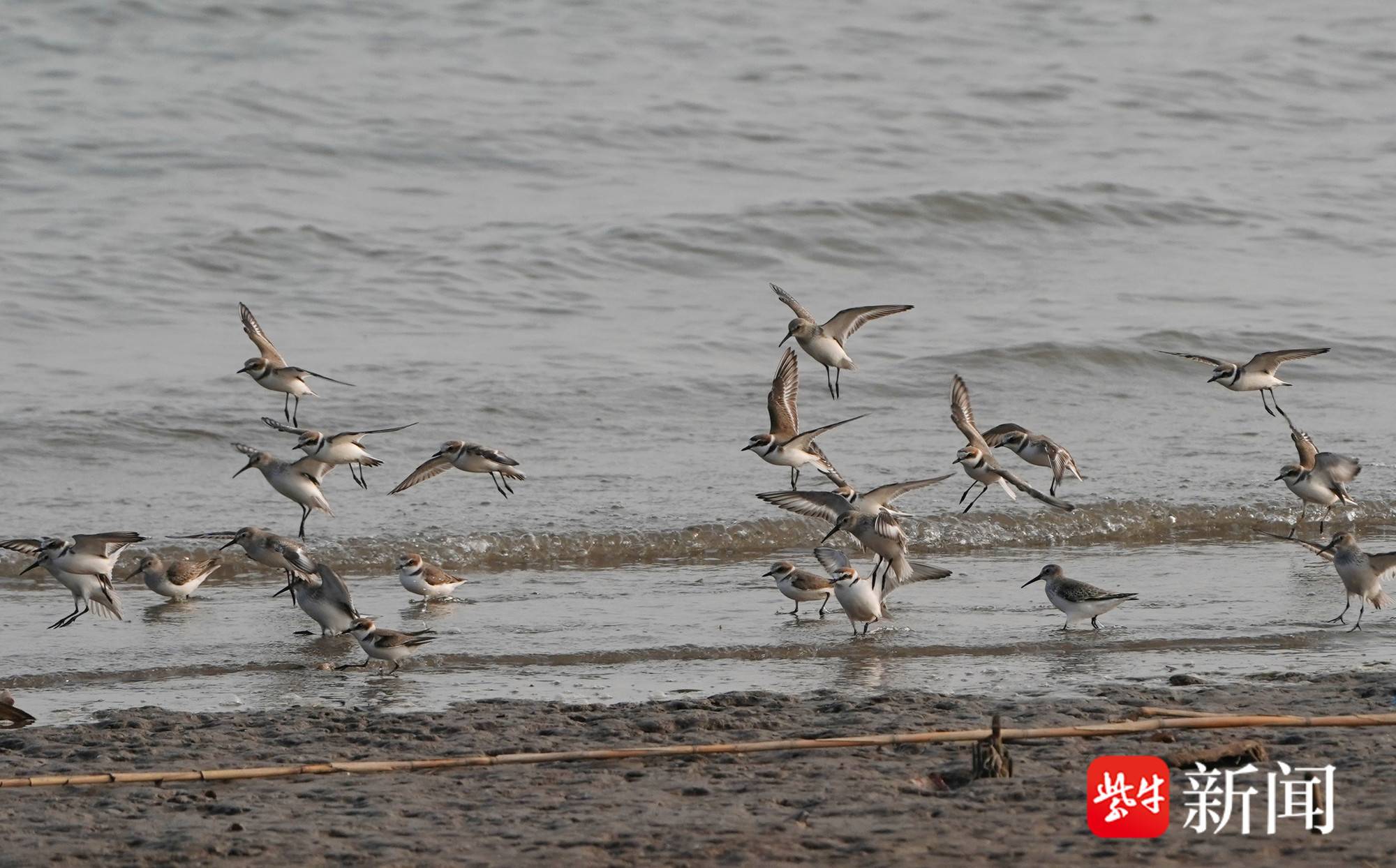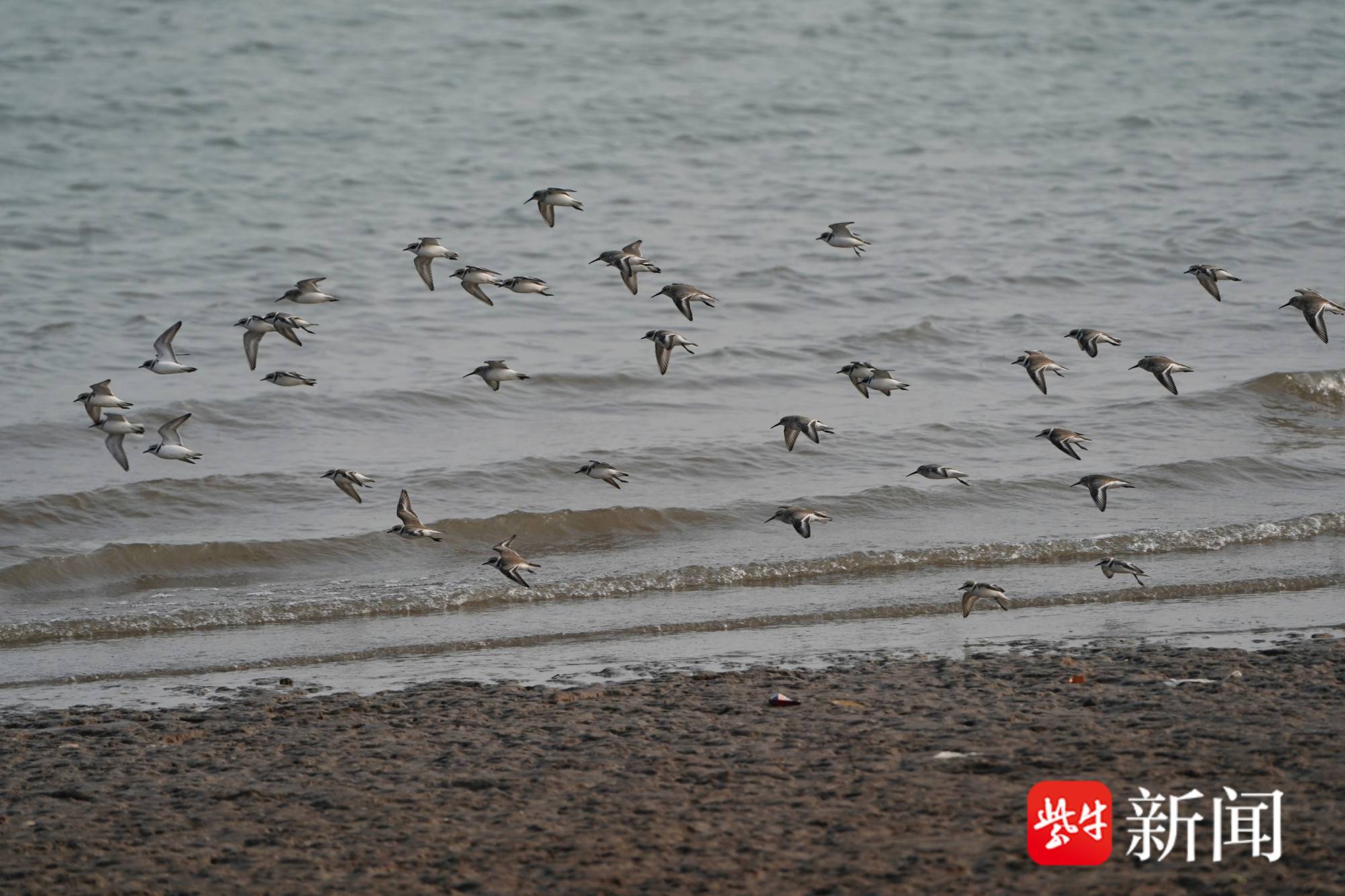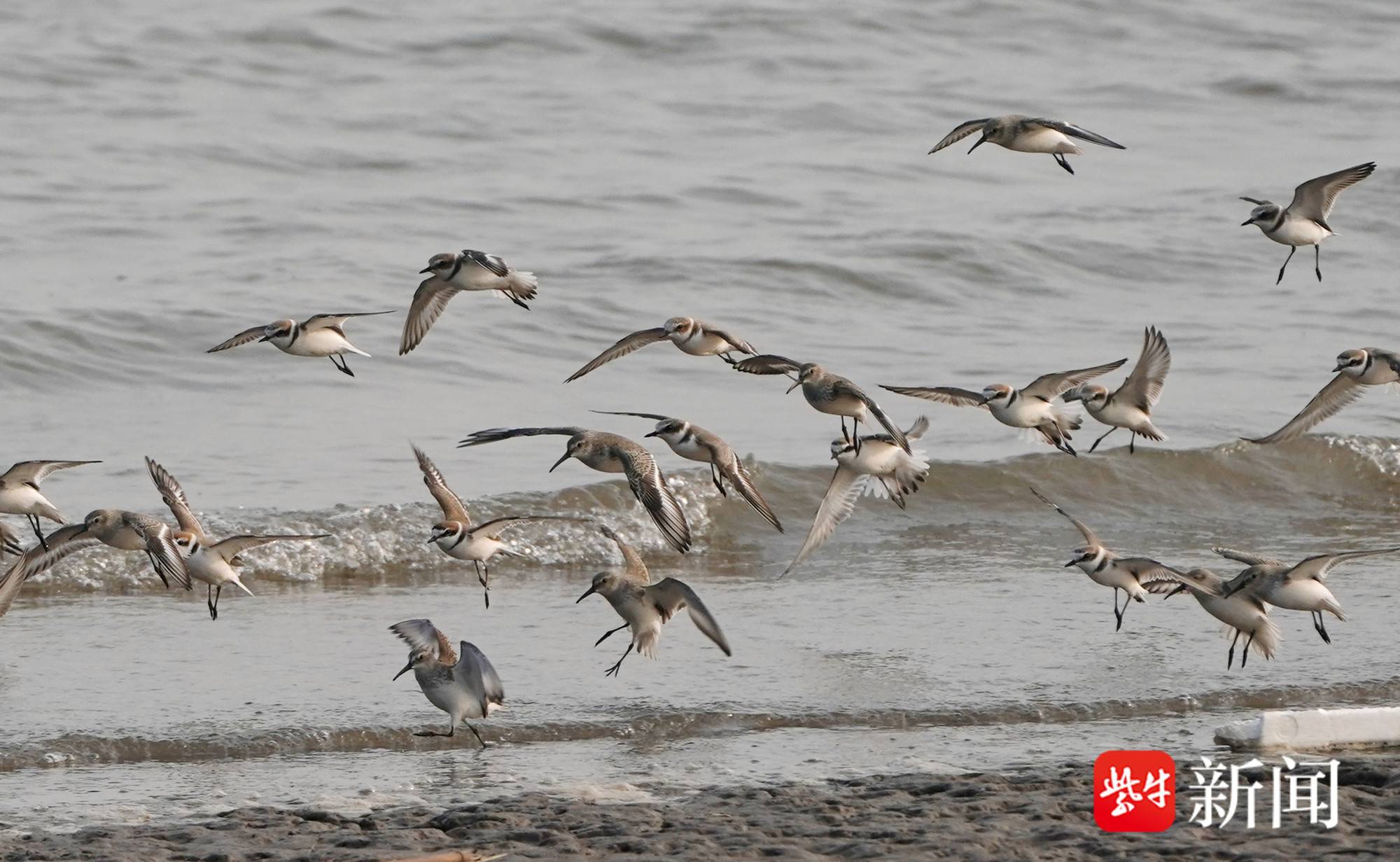 视频|南京江心洲江边,成群罕见金眶鹬鸟现身——