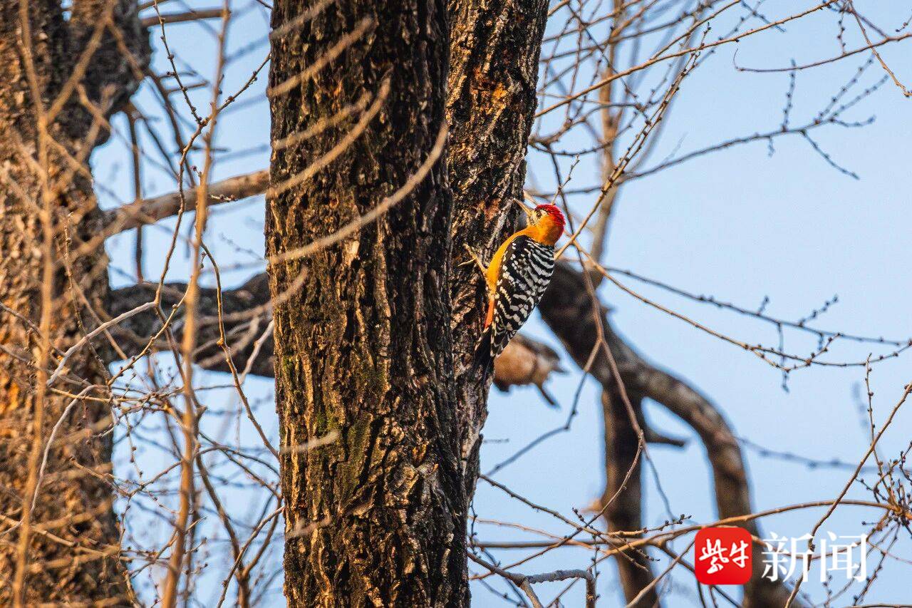 “大明星”棕腹啄木鸟飞来南京玄武湖景区