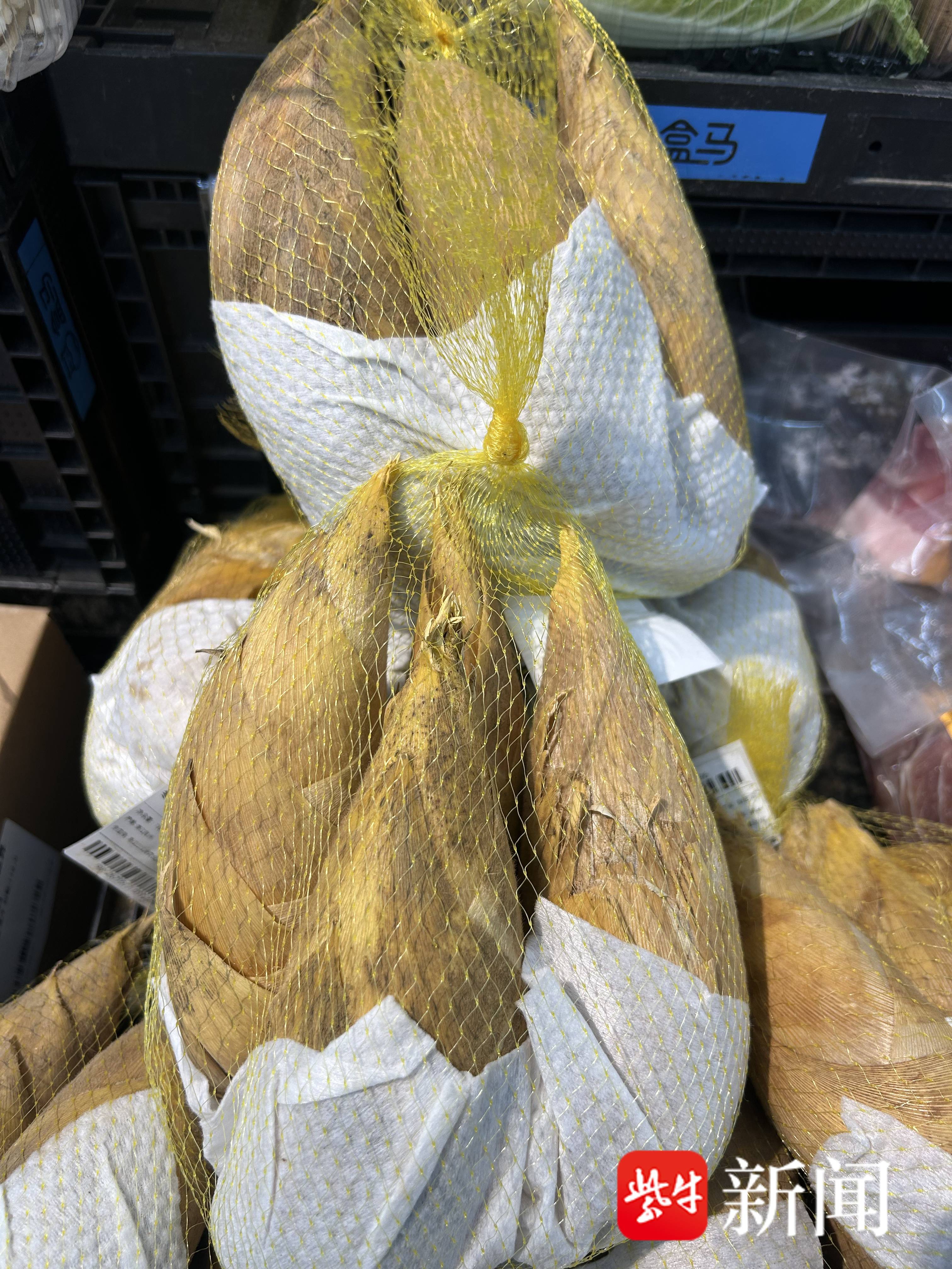 浦口一家超盒算NB店里,产地杭州的冬笋打出了19.9元1kg的特惠价,受到了周边居民的欢迎。中午记者到店时货架上放了十几袋,待到傍晚再去探访时,早已售罄。