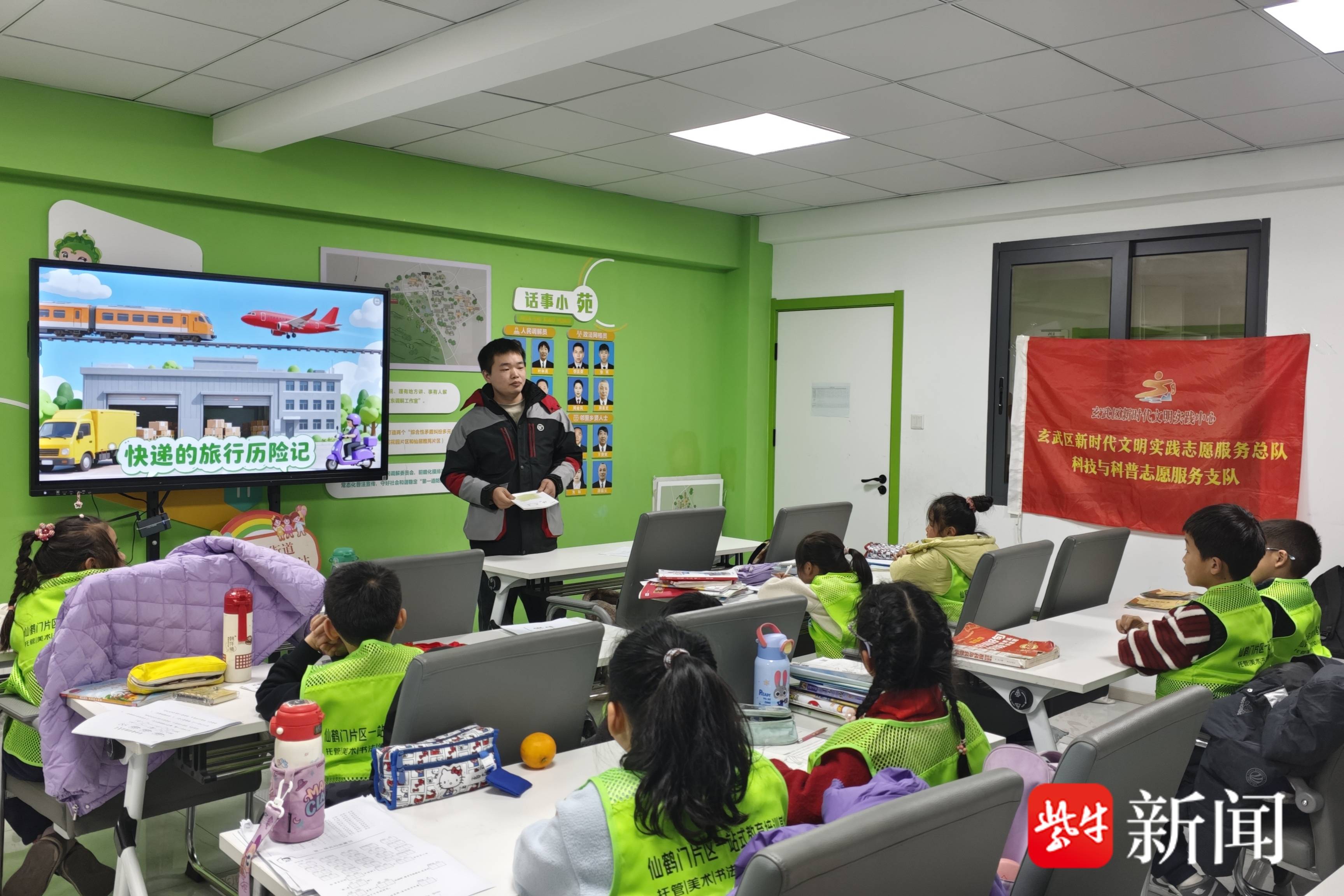 扬子晚报网1月14日讯(记者 闫春旭 通讯员 唐凡轩)“你想象过这样的场景吗?无人机送快递,包裹‘从天而降’……”1月13日下午,在南京市玄武区玄武湖街道仙居雅苑社区,一堂《快递的旅行历险记》的趣味课程正在进行,吸引了约20位小学生参与。令记者意外的是,站在讲台上的“老师”竟是27岁的快递员刘豪,他也是一名曾服役五年的退伍军人。从军营到快递站,再走上社区讲台,他用亲身经历为老人和孩子筑起一道防诈“安全网”,而这背后,正是社区与新就业群体“双向奔赴”的温暖缩影……