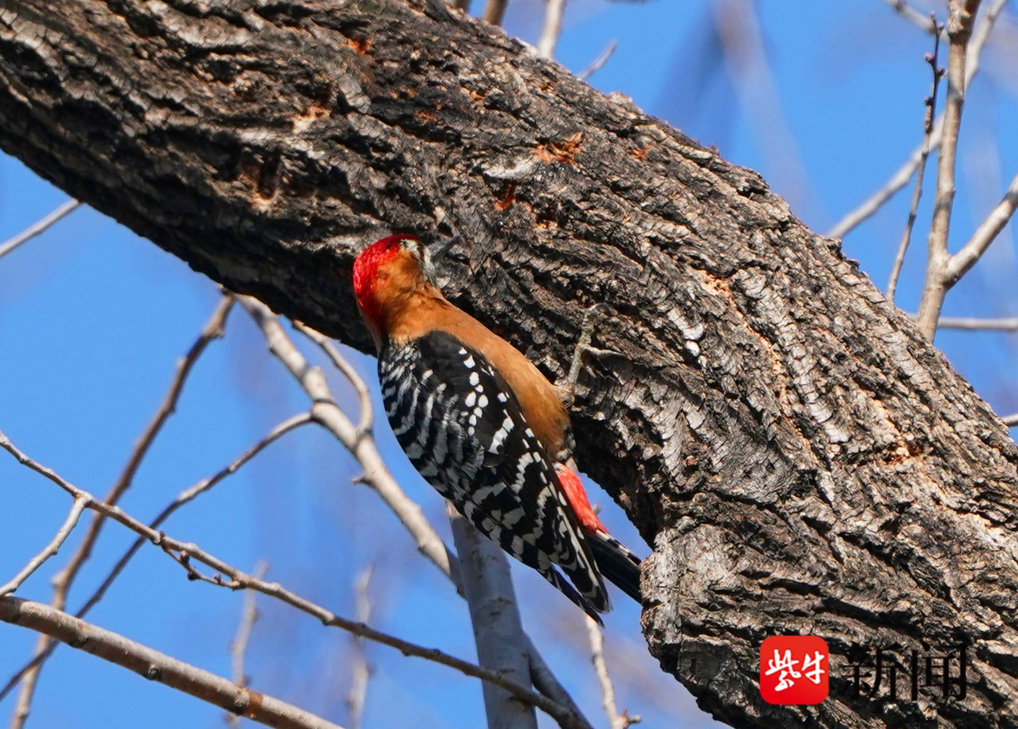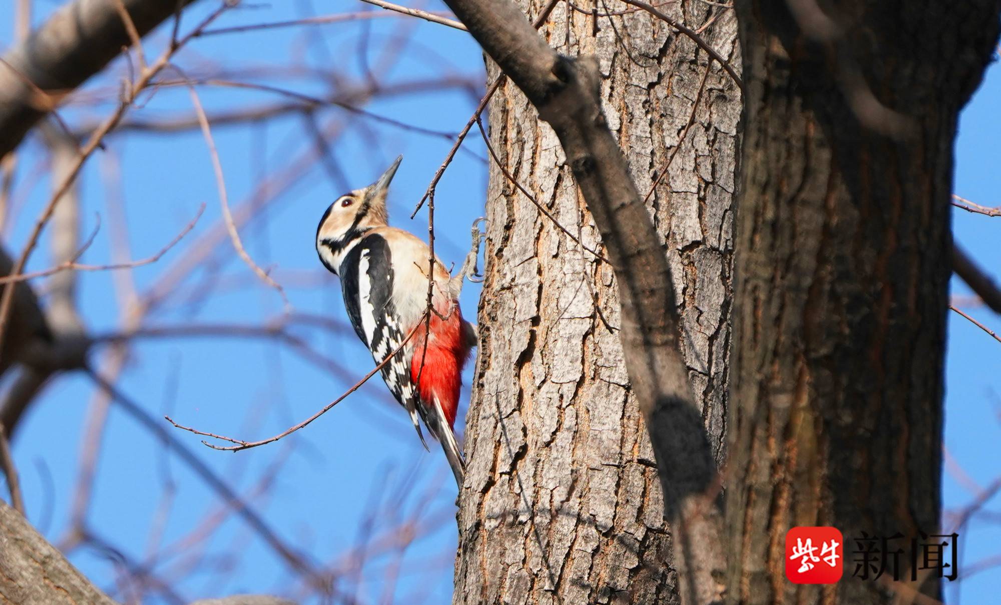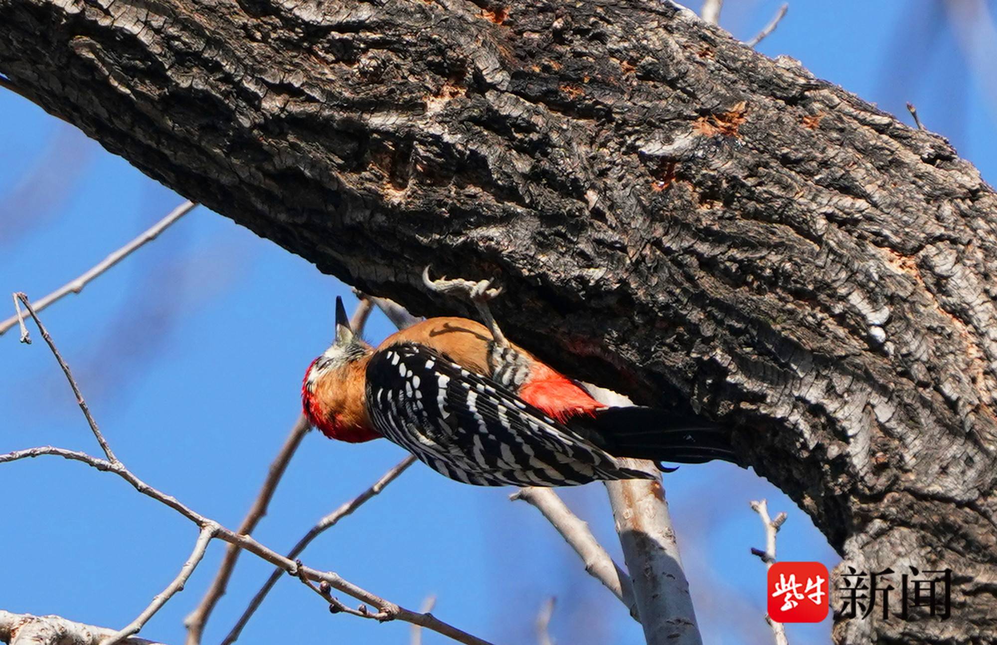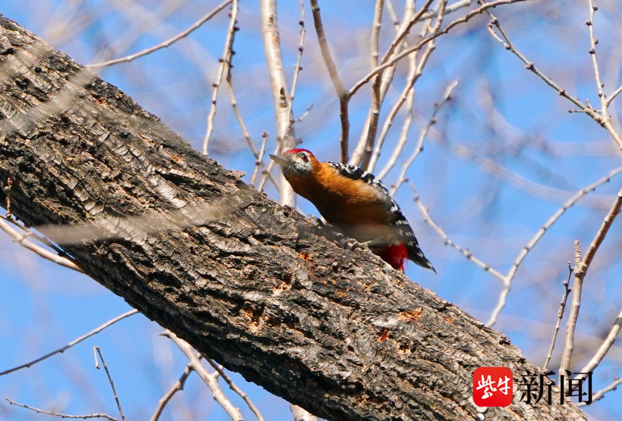 视频|南京玄武湖公园里飞来罕见棕腹啄木鸟,甫一现身便成小网红