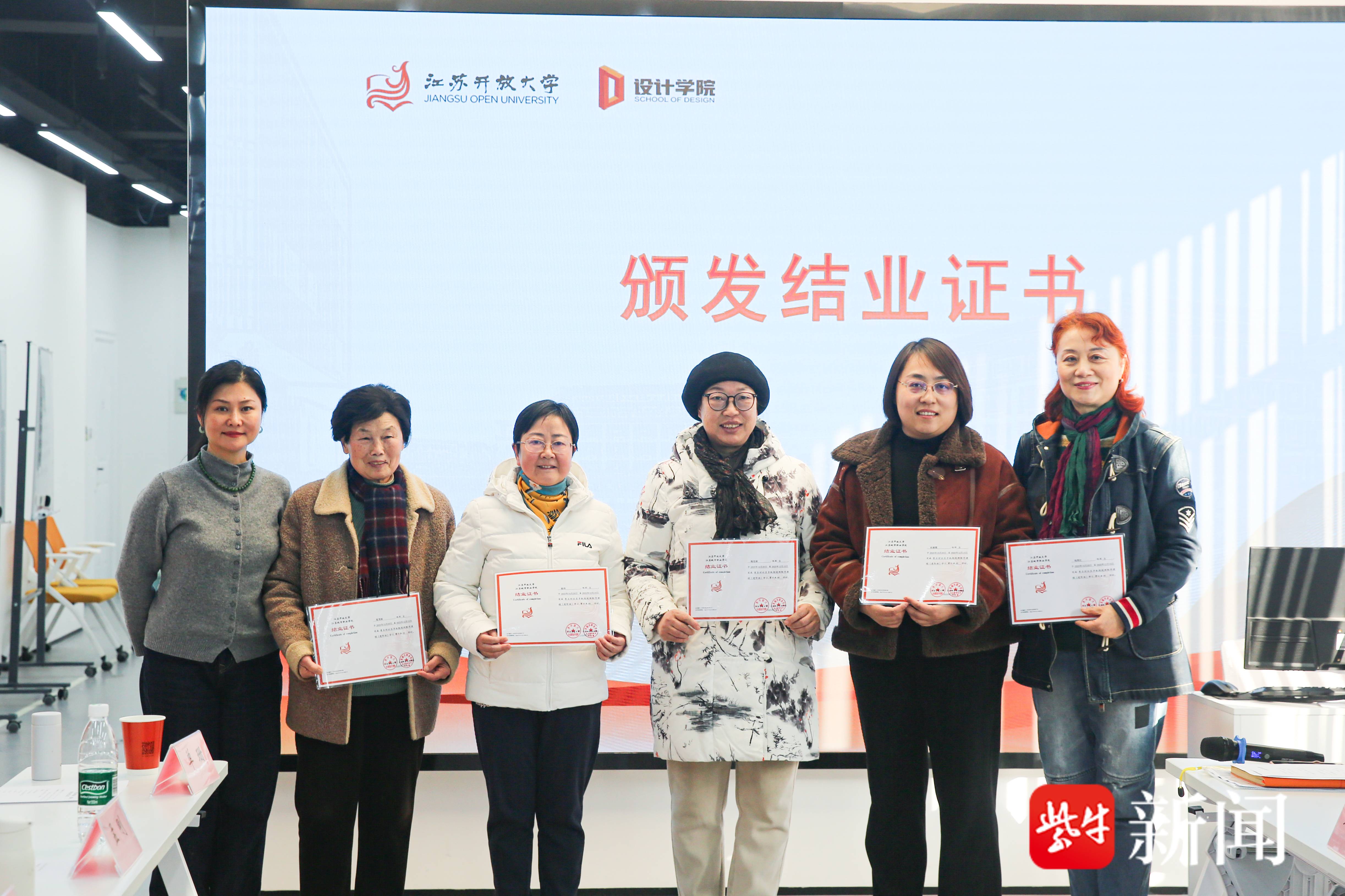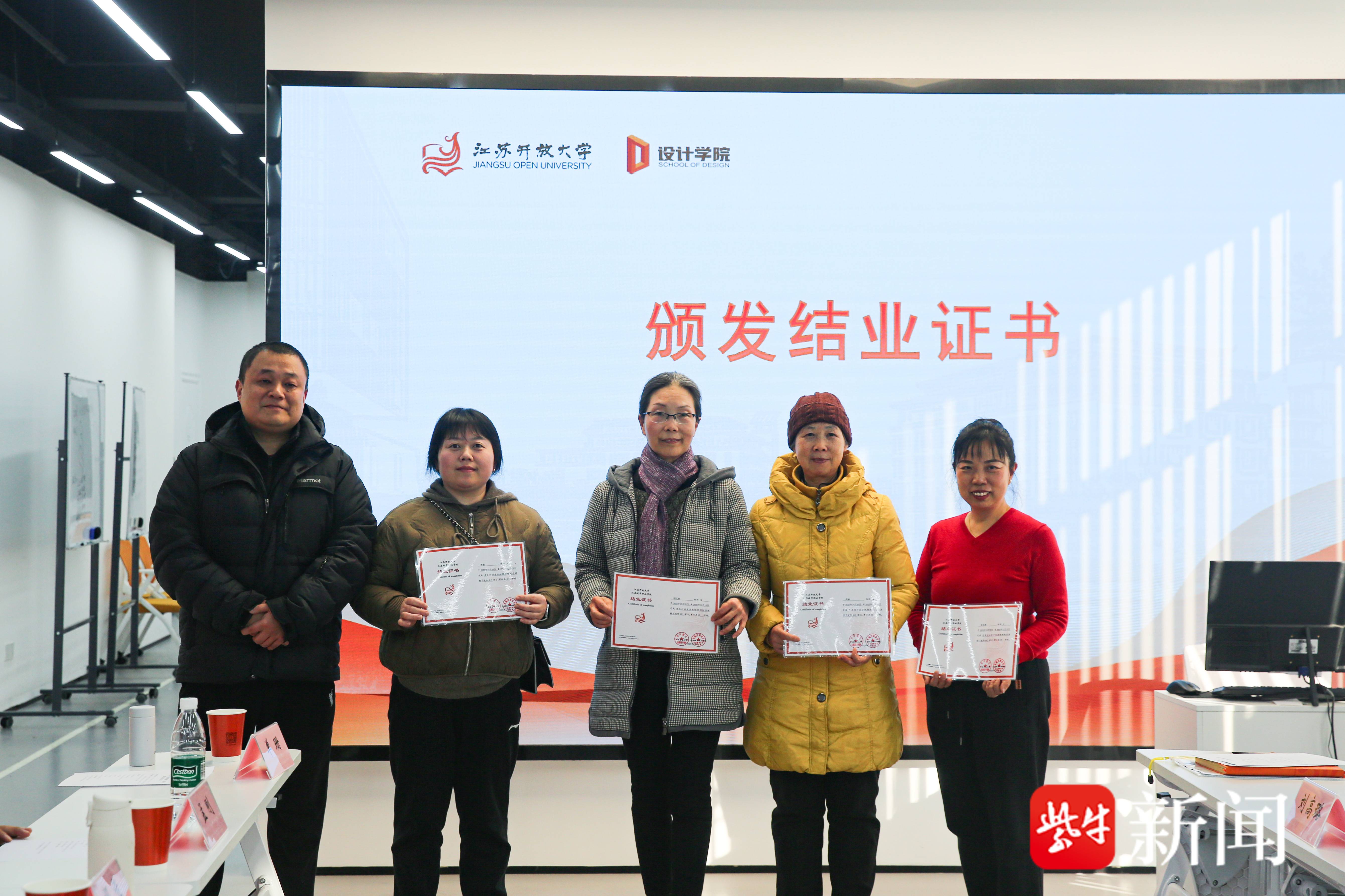 在互动交流环节,江苏开放大学设计学院、青石村社区工作人员及学员代表围坐一堂,就课程成效、后续需求展开热烈讨论。设计学院党总支书记邹佳表示,此次课程的成功落地,为社校双方深化合作奠定了坚实基础,结业不是终点,而是新的起点,未来学院将以更精准的服务对接群众需求。在设计学院副院长孟刚看来,此次合作不仅体现了学院对老年教育、社会教育的重视,也见证了居民学员的热情与信任,希望2026年能够再度携手。