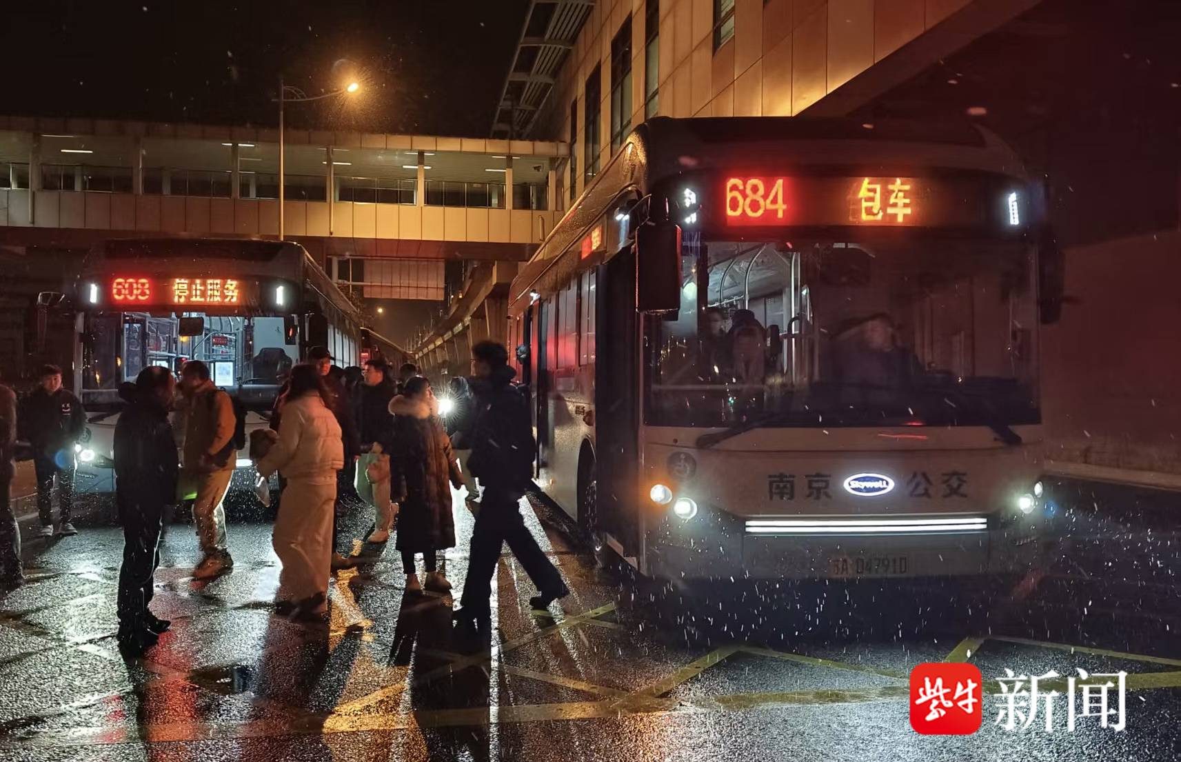 1月19日晚,受低温天气影响,南京地铁S3号线刘村站至马骡圩站高架区段接触网出现覆冰情况,为保障运营及乘客安全,该区间临时停运。南京公交浦口客运公司迅速响应号召,紧急调配运力投入接驳服务,工作人员加强现场管控,及时引导客流、解答咨询 。