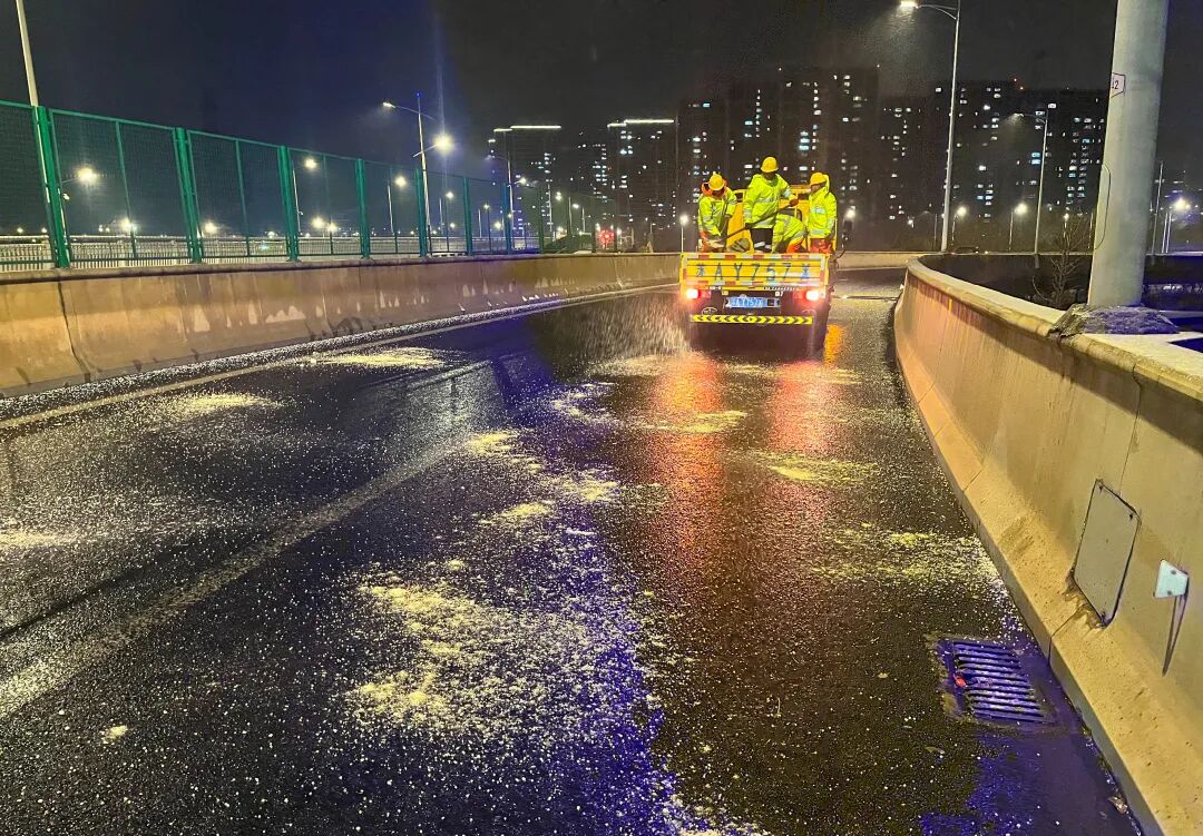 截至20日7时,市交通运输局公路中心累计出动人员近1778人次、车辆和机械538台次,清扫道路、街巷30条,使用融雪剂1576.7吨,融雪盐93.65吨,铺设防滑垫20处,设置提醒路牌66个。截至发稿时,全市国省干线通行正常。