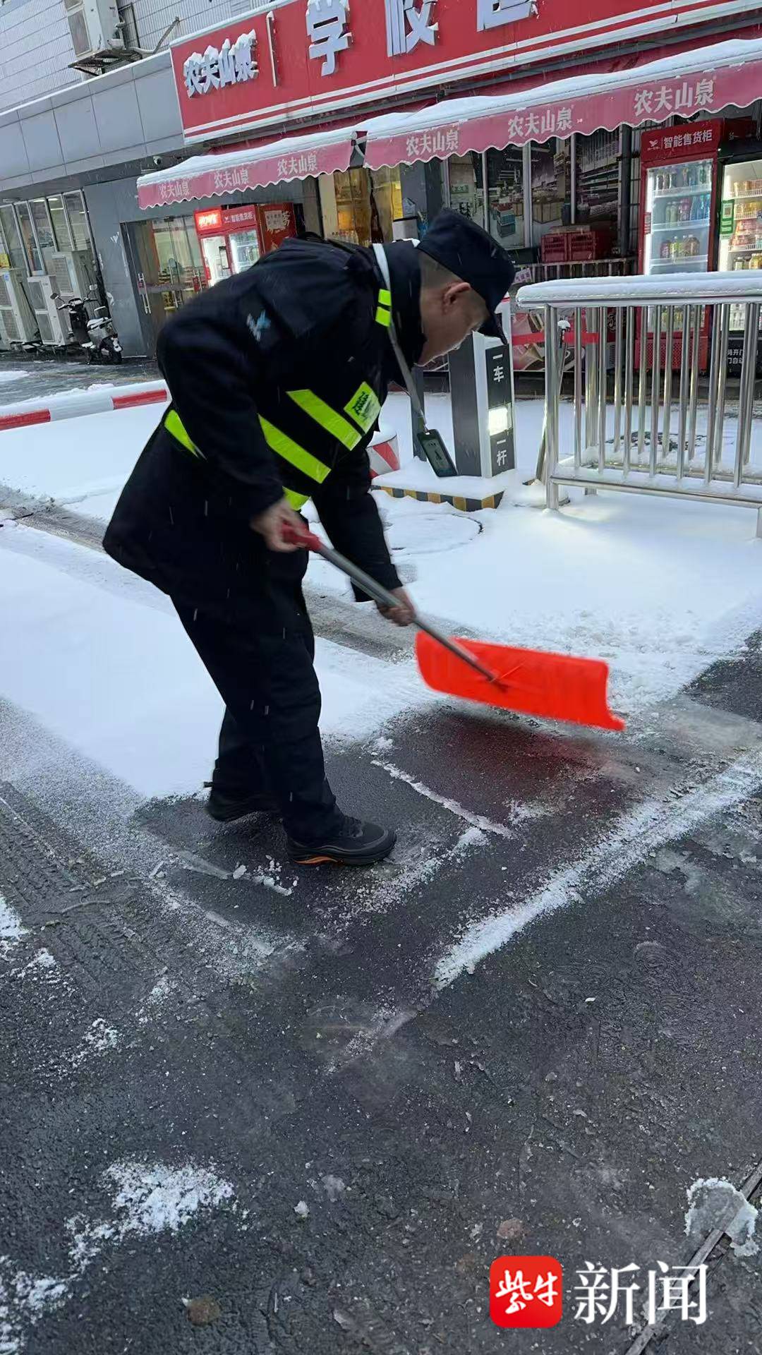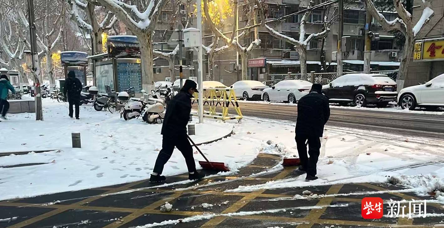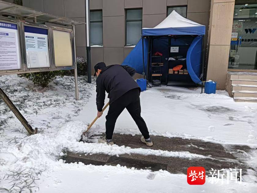 “雪情就是命令,保障就是责任。”该公司相关负责人顾建兵告诉记者,降雪伊始,公司各项目点即刻启动应急响应,队员们放弃休息、迅速集结,积极备勤。公司的物资也随之分发到位。20日凌晨,当千家万户居民正在睡梦之中,各项目点的队员手持铁锹、扫帚、推雪板等工具开始奔赴扫雪一线。从凌晨3点统一开始,他们在侵华日军南京大屠杀遇难同胞纪念馆、南京博物院、江苏省第二师范学院、开放大学等四十几个项目点同时开始清扫积雪,一时间,现场都是保安队员忙碌的身影,用高效响应践行“雪停即扫、人到雪净”的承诺。队员们分工明确、默契配合。有的弯腰清扫主干道浮雪,有的挥锹铲除台阶积冰,铁锹与地面的碰撞声、扫帚清扫的沙沙声,交织成雪夜里最动人的守护乐章。