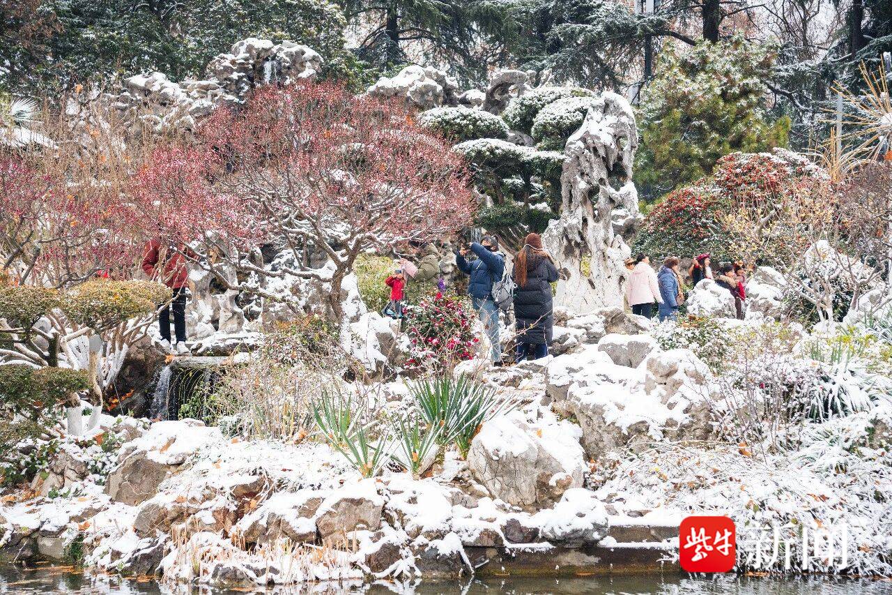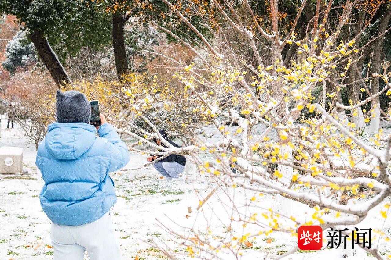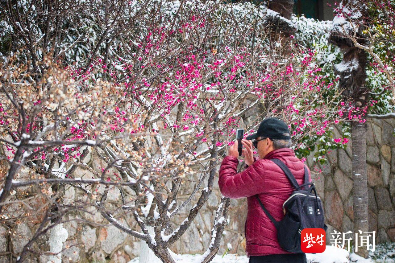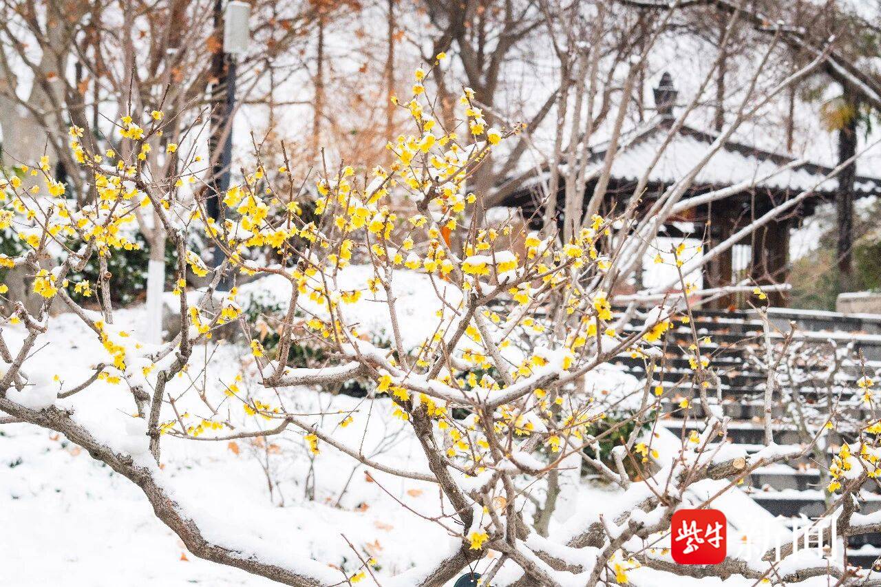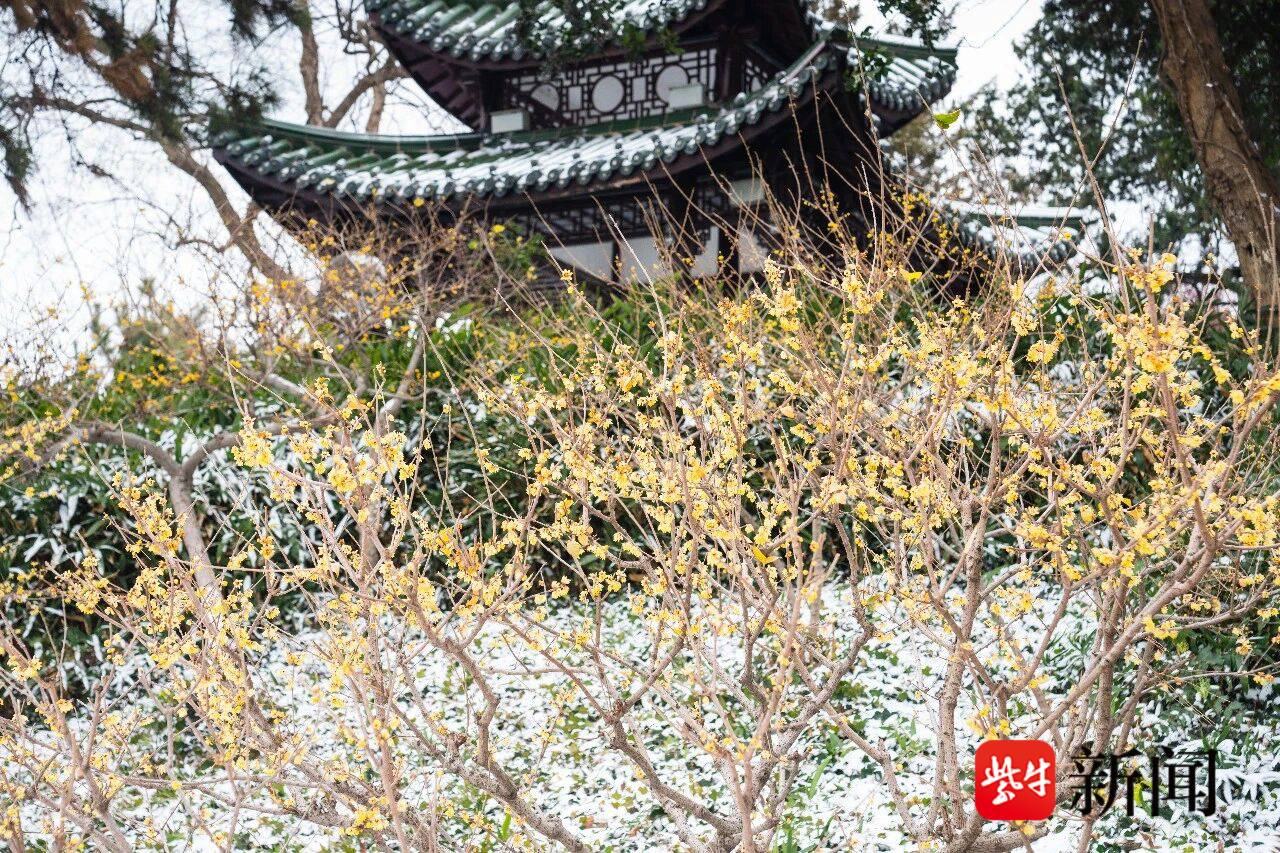 此时正是“踏雪寻梅”的好时机。玄武湖畔蜡梅正盛,早梅也已零星绽放。金黄与粉红的花瓣点缀于覆雪的枝桠之间,清冽空气中浮动着隐约幽香,构成冬日独有的雪梅意趣。