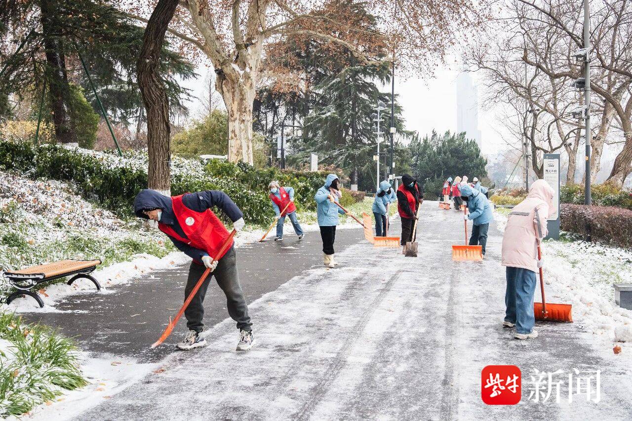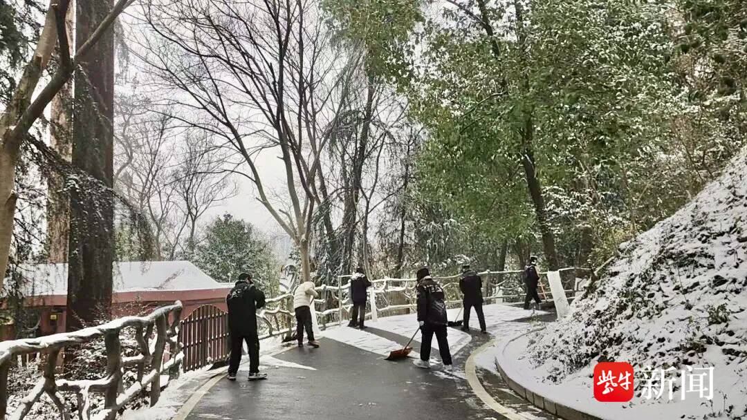 踏雪游园赏冬韵,南京雪景“护卫队”为市民清出安心路