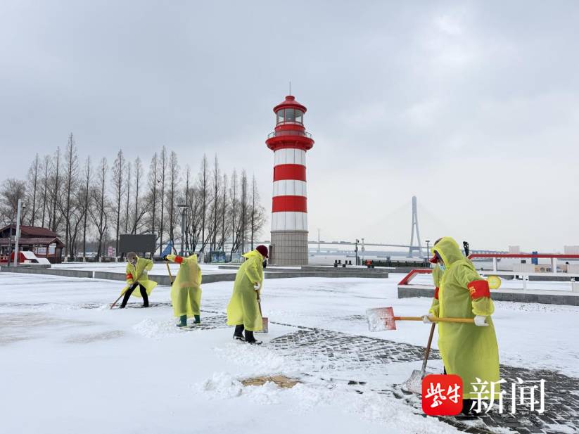 今年,南京滨江公园扫雪工作有了“科技范儿”。依托智慧管理平台,公园公司可实时监控雪情与清扫进展,实现高效调度。园区不仅储备了足量融雪剂、防滑垫等物资,还将根据天气情况开展夜间预防性作业,全天候守护游园安全。