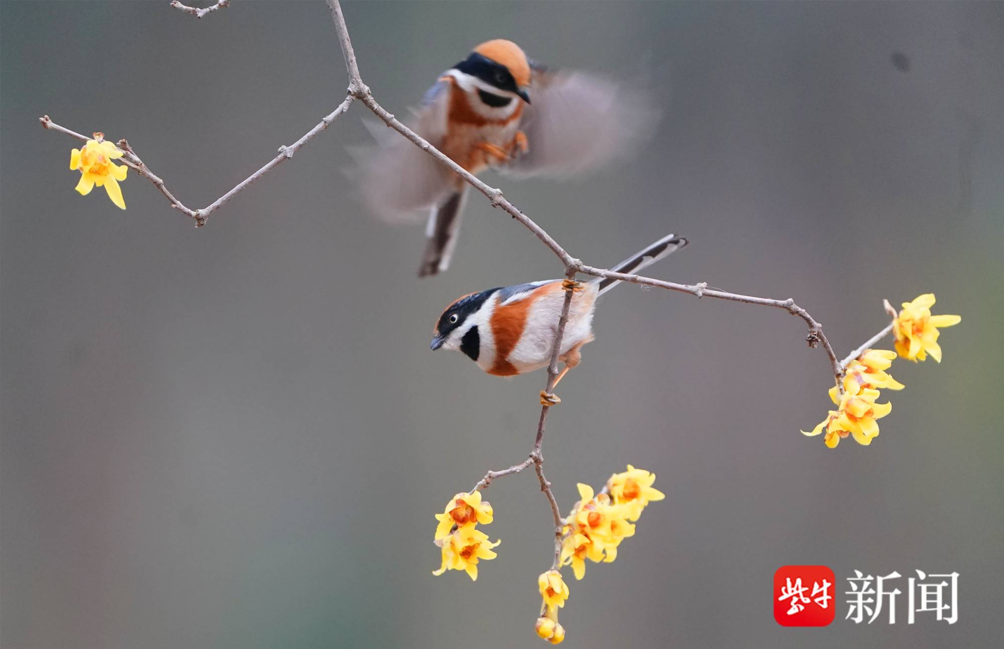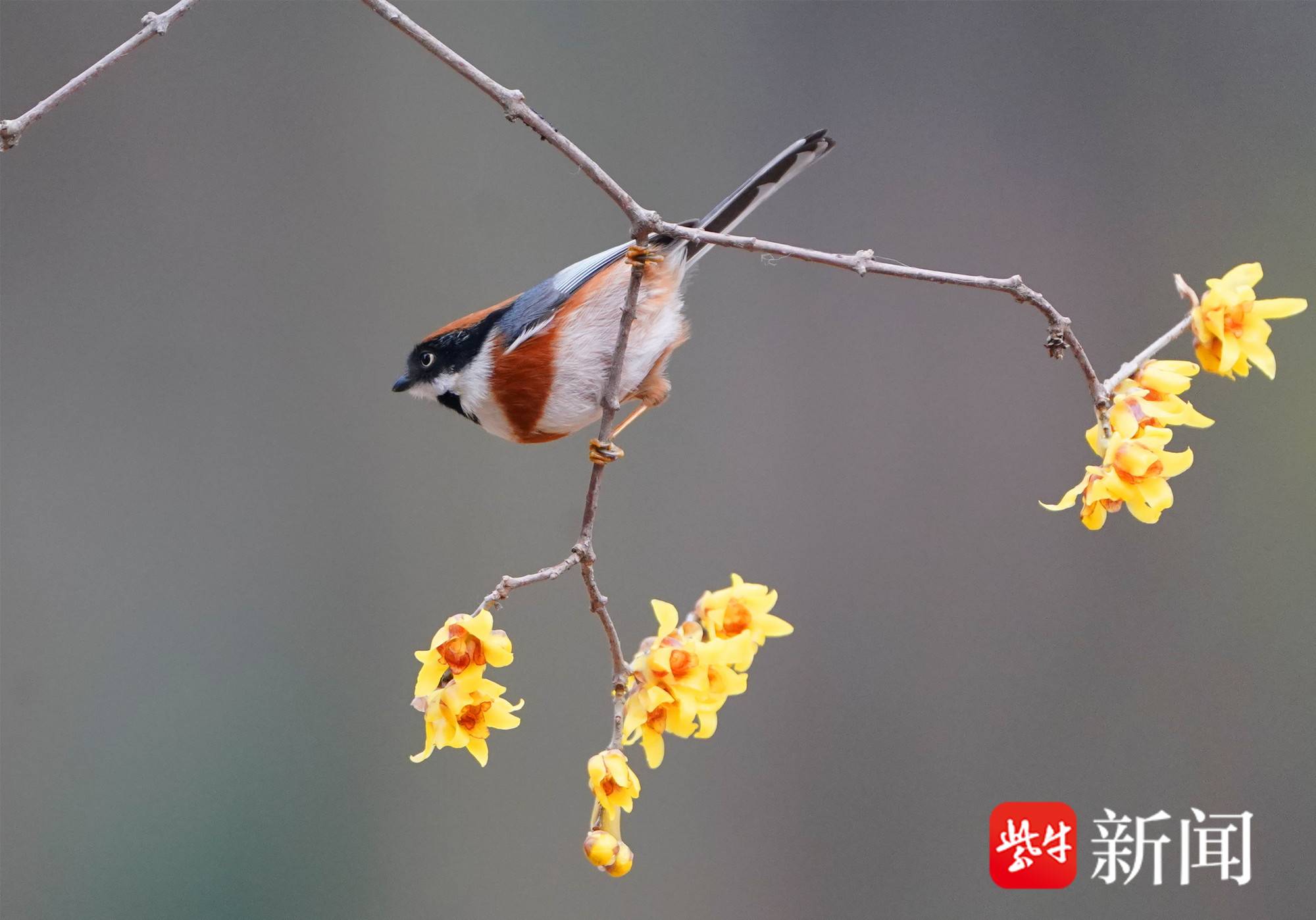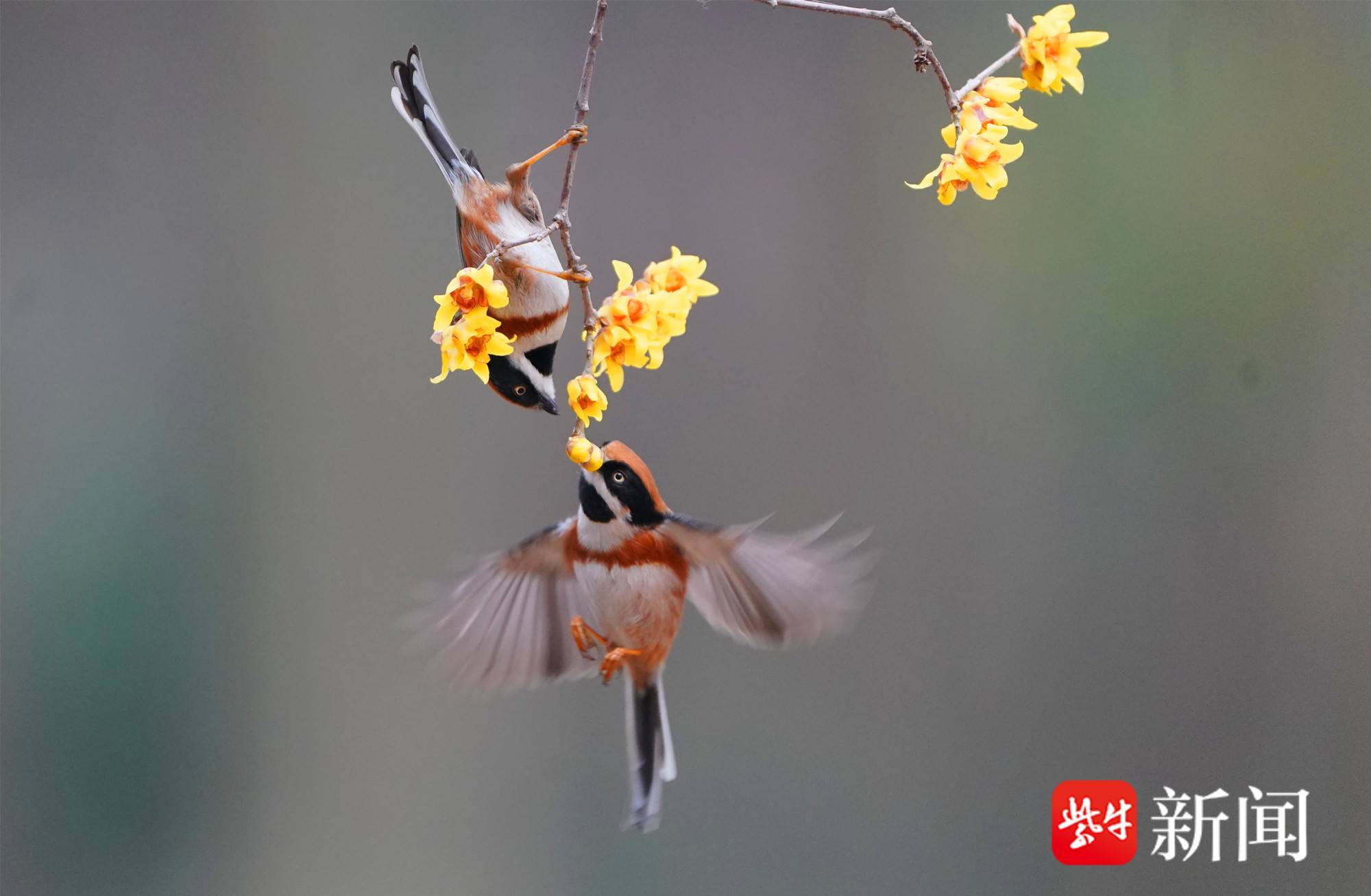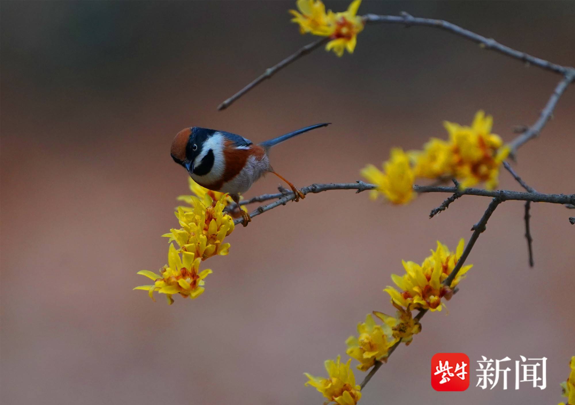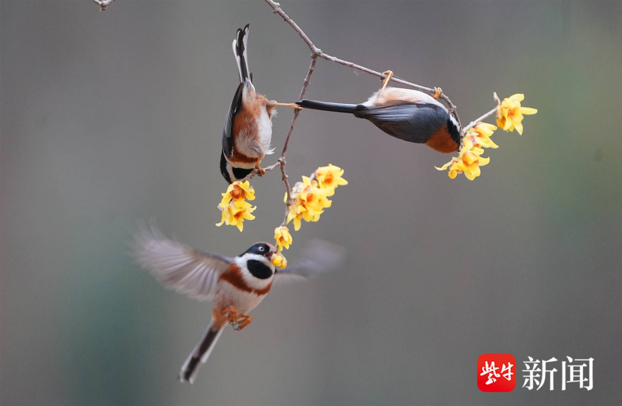视频|南京中山植物园山下,蜡梅盛开引来“小老虎”鸟嬉闹