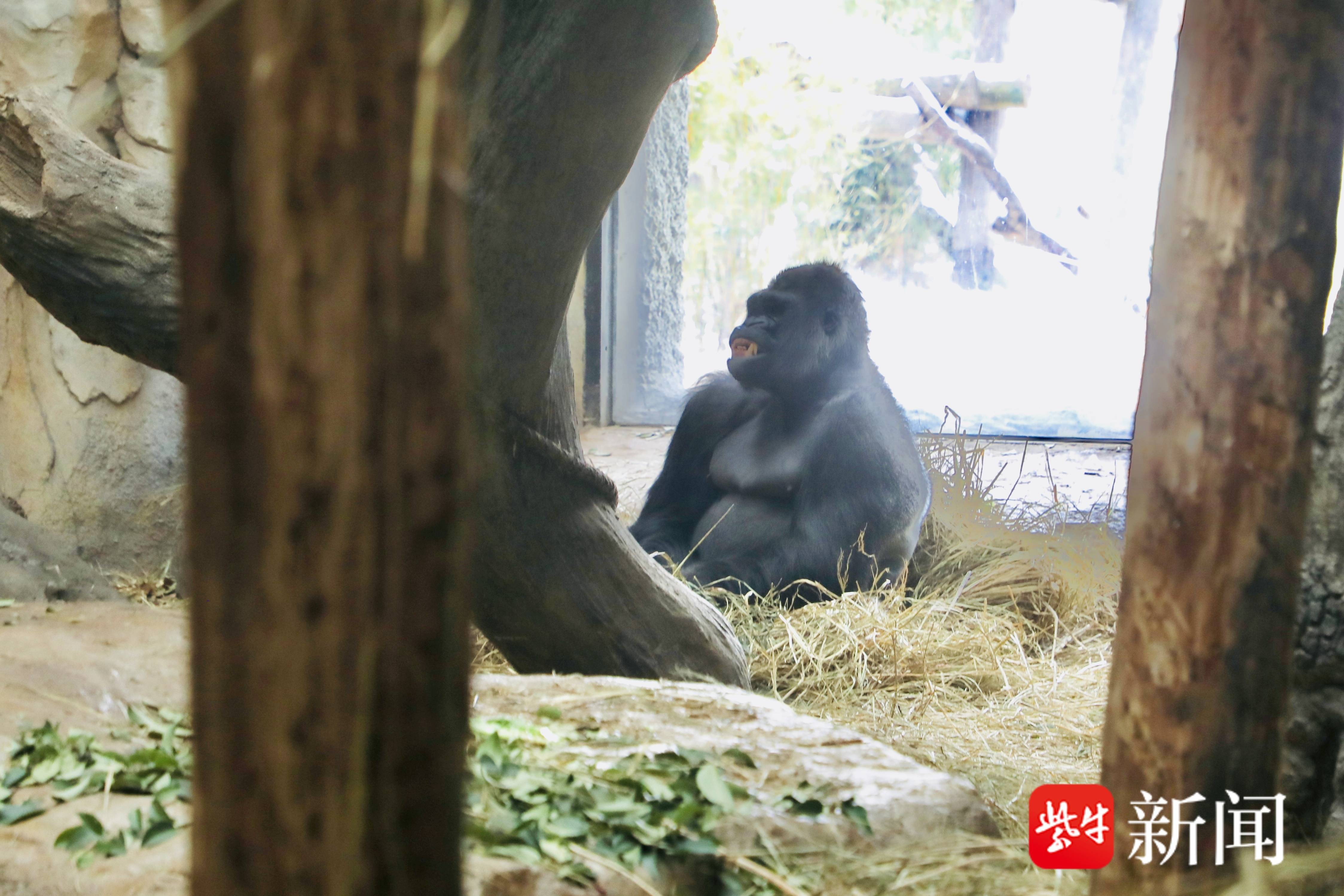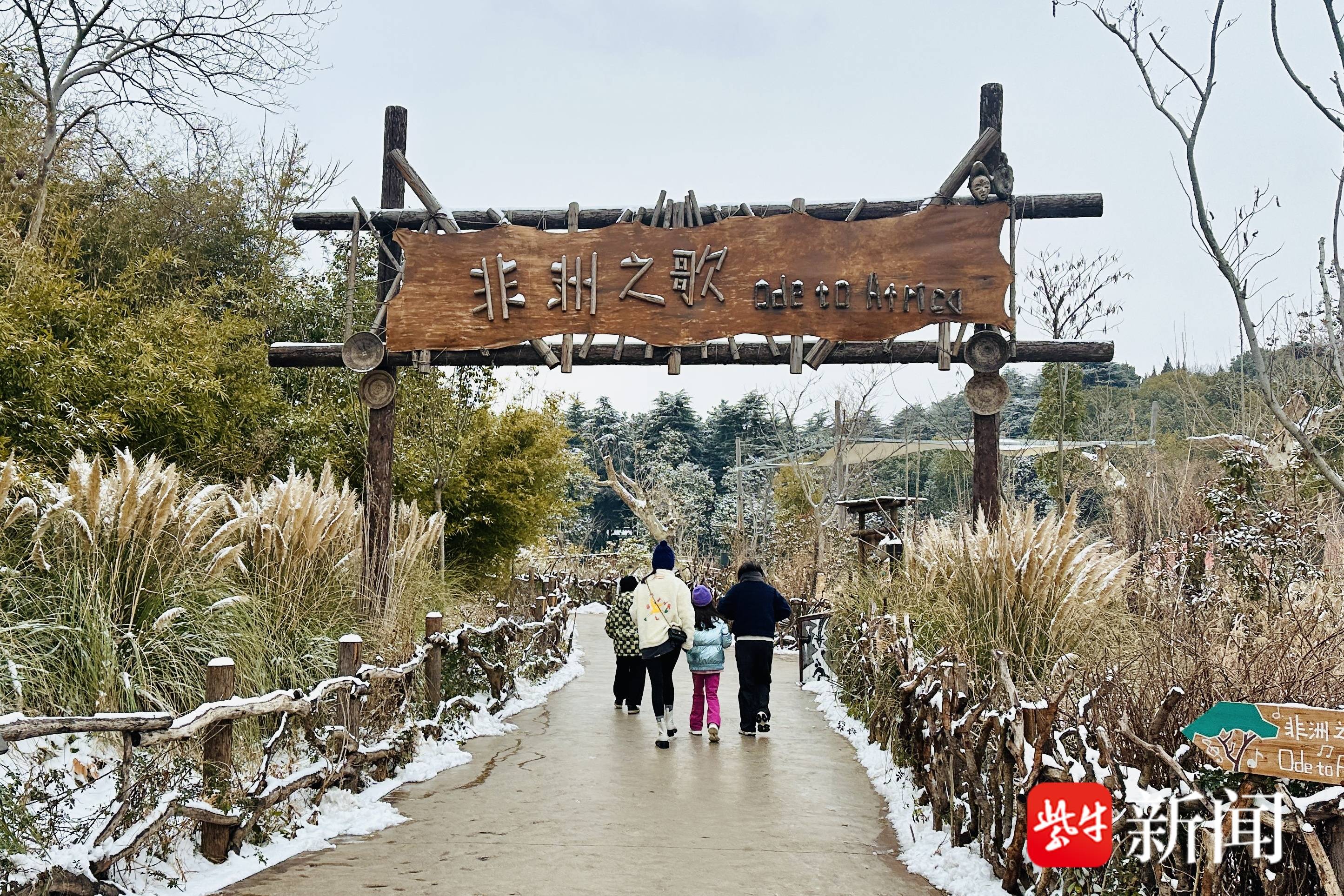 1月20日,踏着未化的冰雪,扬子晚报/紫牛新闻记者来到南京红山森林动物园。刚靠近非洲区雨林馆的大猩猩“寝室”,一股暖意便扑面而来。