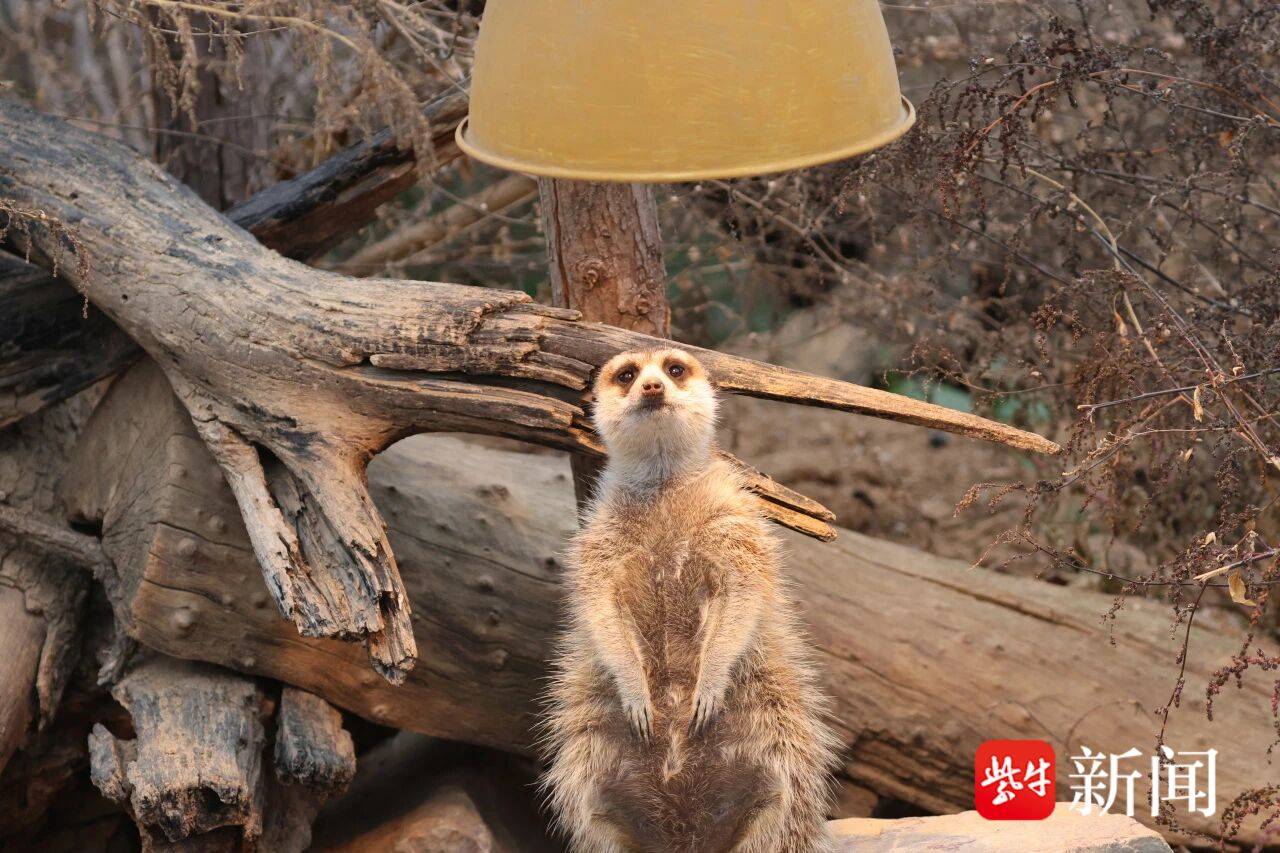 对于耳廓狐、细尾獴等小型动物,园区则准备了带加热设施的巢箱和加热灯。细尾獴聚集在暖灯下,站立放哨的模样被游客趣称为“烫头”。户外寒冷,但灯下却暖意融融,这些动物精灵可以一边取暖,一边保持着对外界的好奇,安然体验南京的冬日。