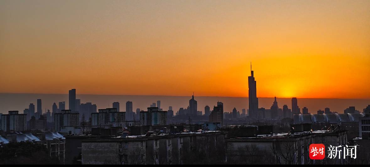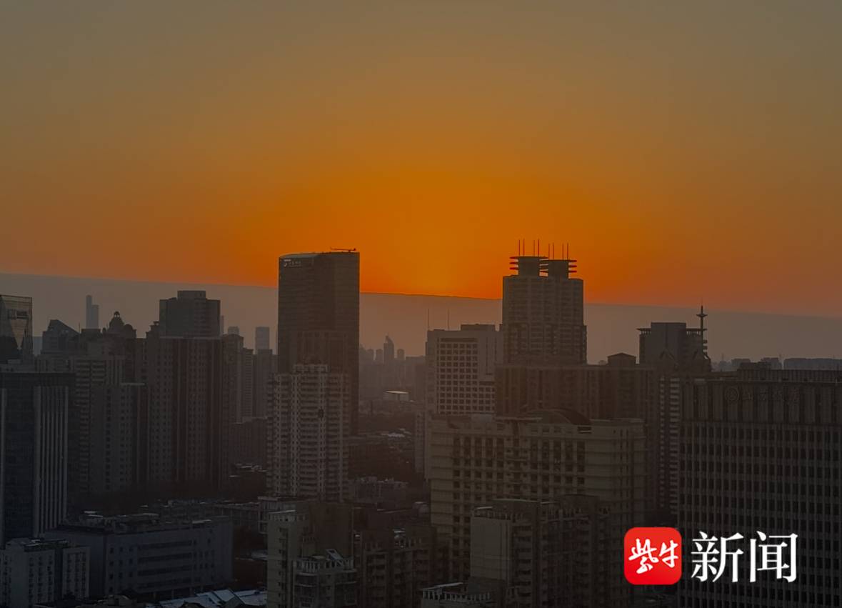 视频|冷暖空气交汇,南京夕阳爬下壮丽“云墙”