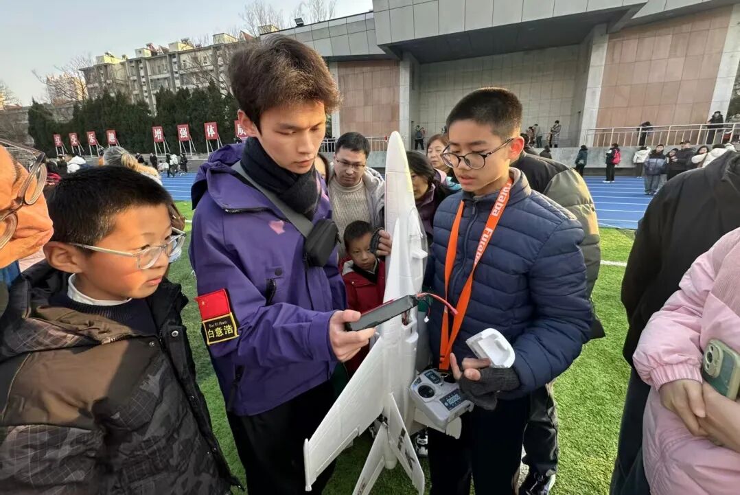 航模表演前,不少青少年围立在模型旁凝神聆听、踊跃提问,眼中满是对航空航天未知领域的好奇与向往。一位初一的航模爱好者,特意带着自己的航模来到现场,向南航学长学姐请教专业知识。他坦言,这次沉浸式体验让自己深切感受到我国航空航天事业的蓬勃发展,不仅坚定了未来投身相关领域的理想信念,更让心中对航空航天的热爱,有了更具体的前行方向。