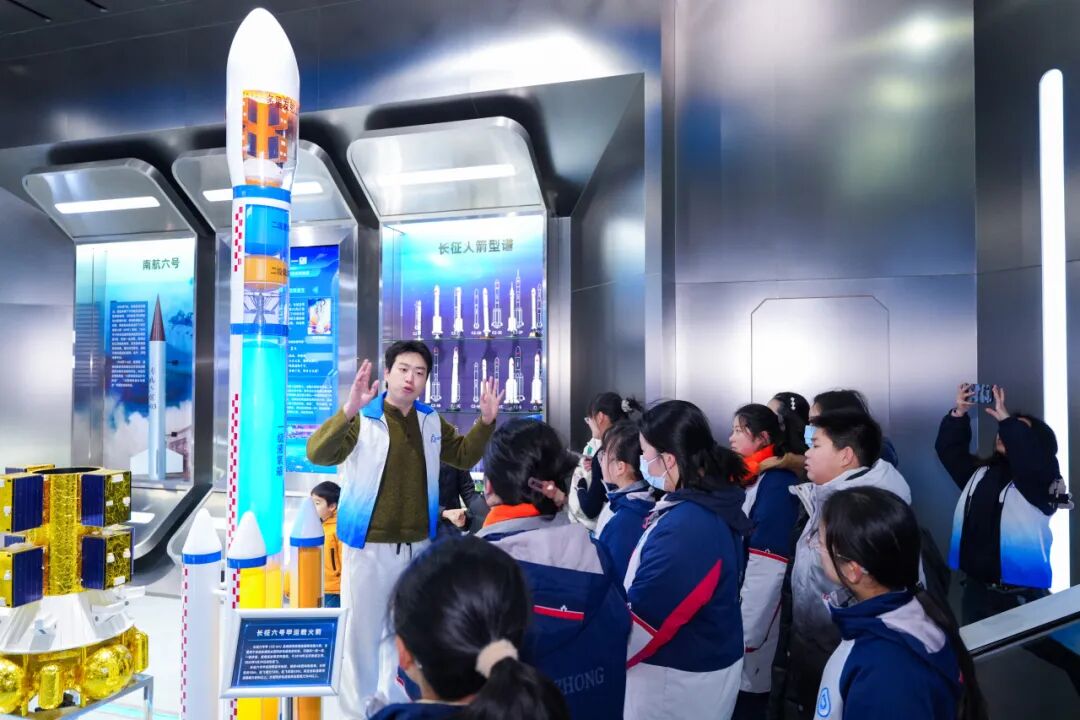 “小朋友们,你们平时在家会洗衣服吗?宇航员怎么洗衣服呢?他们会脱下来,放在货运飞船上,运回地球来洗……”在航天教育教学基地,小朋友们好奇地围绕在讲解员身侧,聆听航天员在太空中生活的小知识。