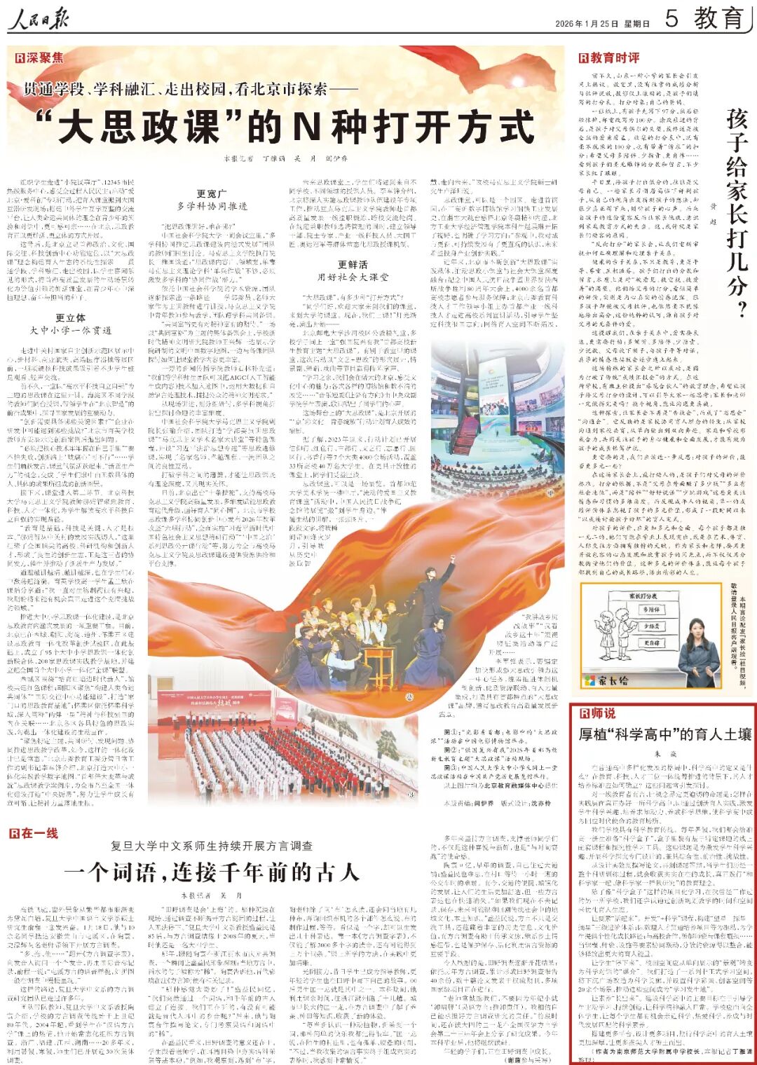 内容来源 | 人民日报,作者为南京师范大学附属中学校长,人民日报记者丁雅诵整理